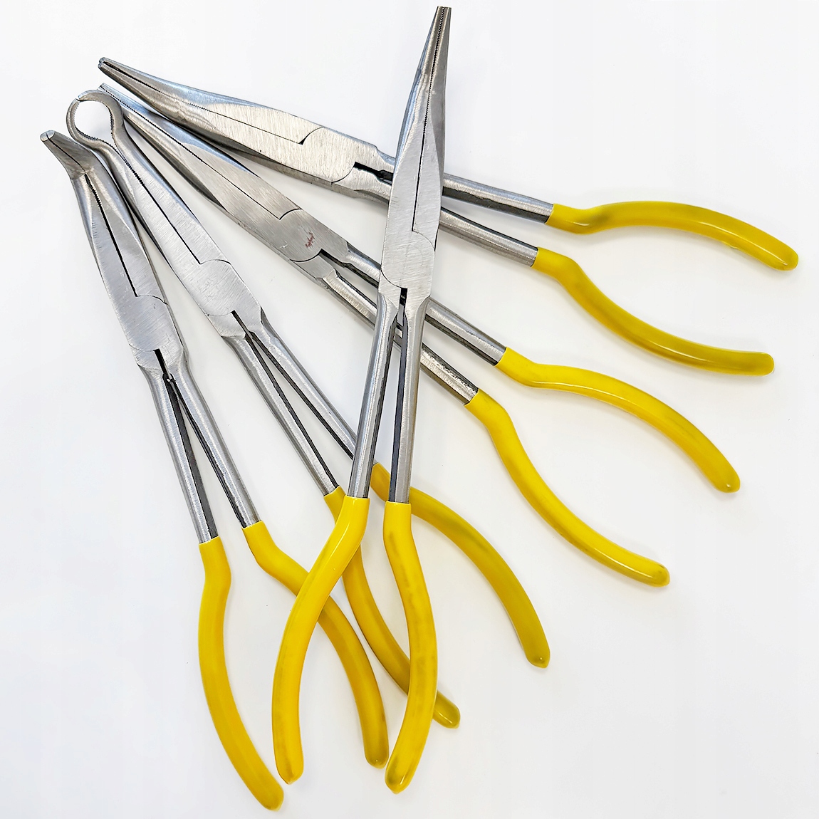 W komplecie znajduje się pięć narzędzi o różnych kształtach końcówek, co pozwala dobrać odpowiednie szczypce do konkretnej pracy.