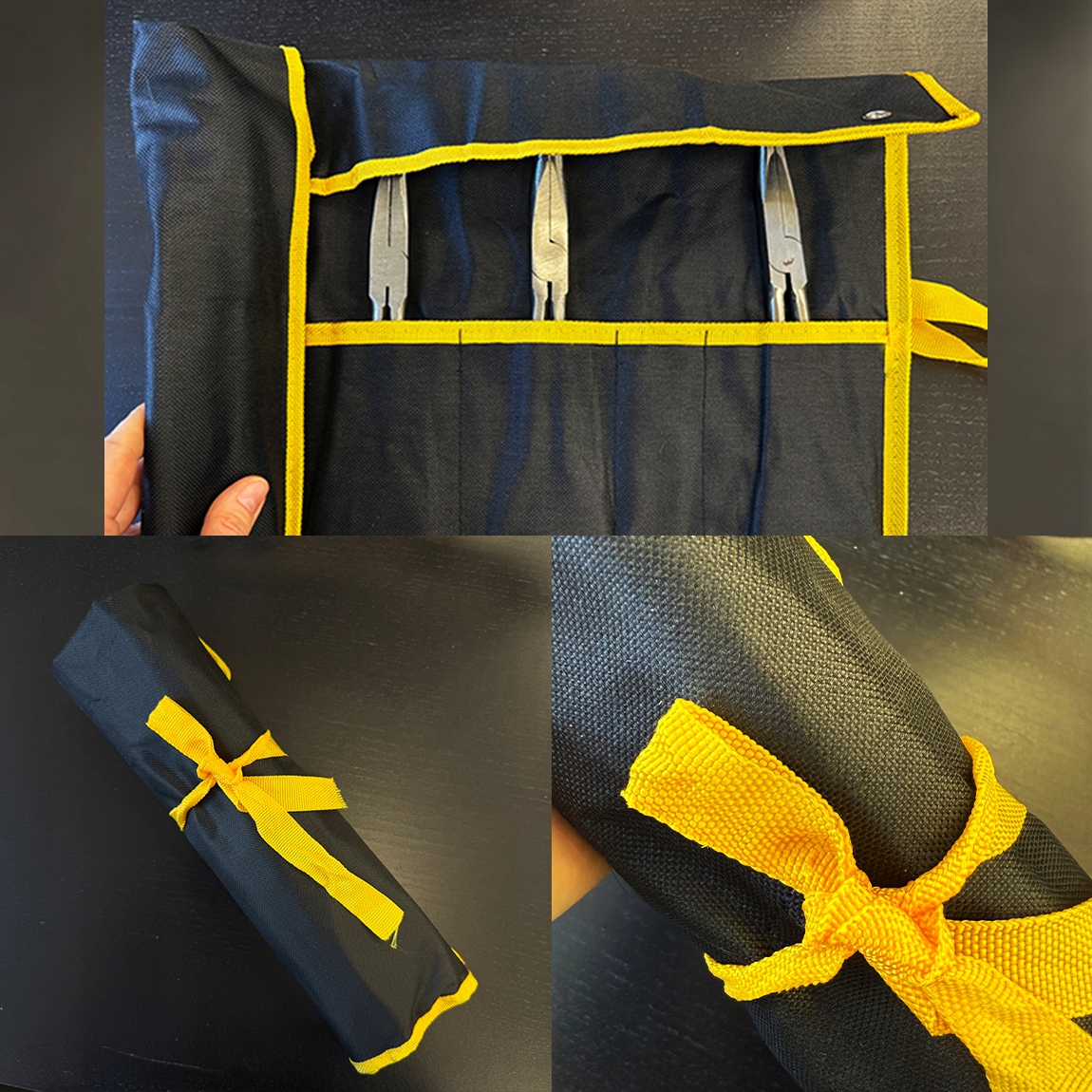 Zestaw zapakowany jest w praktyczne etui, które pomaga utrzymać porządek w narzędziach.