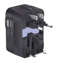 Przejściówka, adapter zasilania uniwersalny z dwoma gniazdami USB umożliwia podłączenie angielskich, amerykańskich, japońskich, europejskich urządzeń elektrycznych do angielskich, amerykańskich, japońskich, europejskich gniazdek elektrycznych.