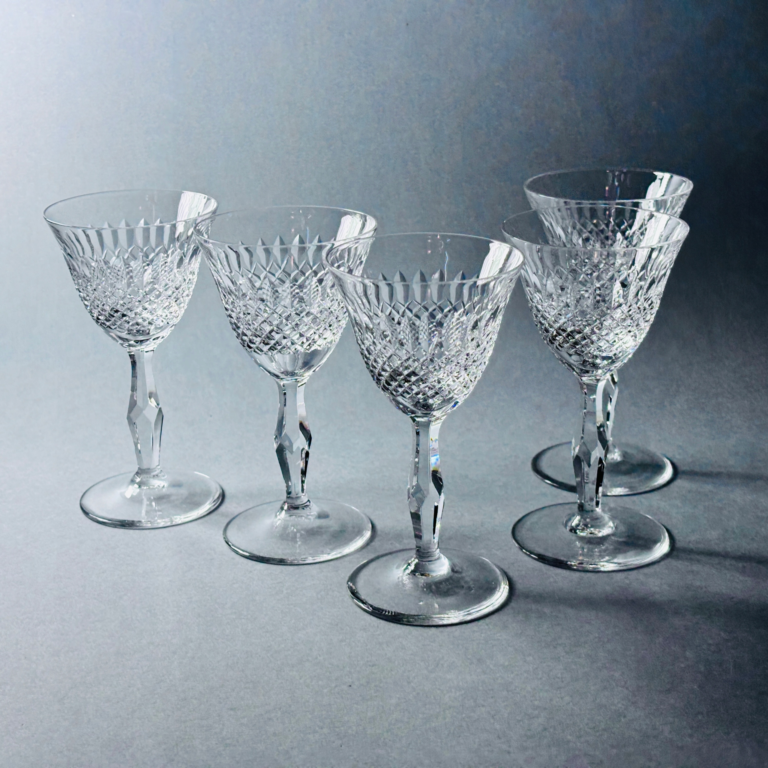 Kieliszki ozdobione szlifem zarówno na czaszy jak i na nodze.