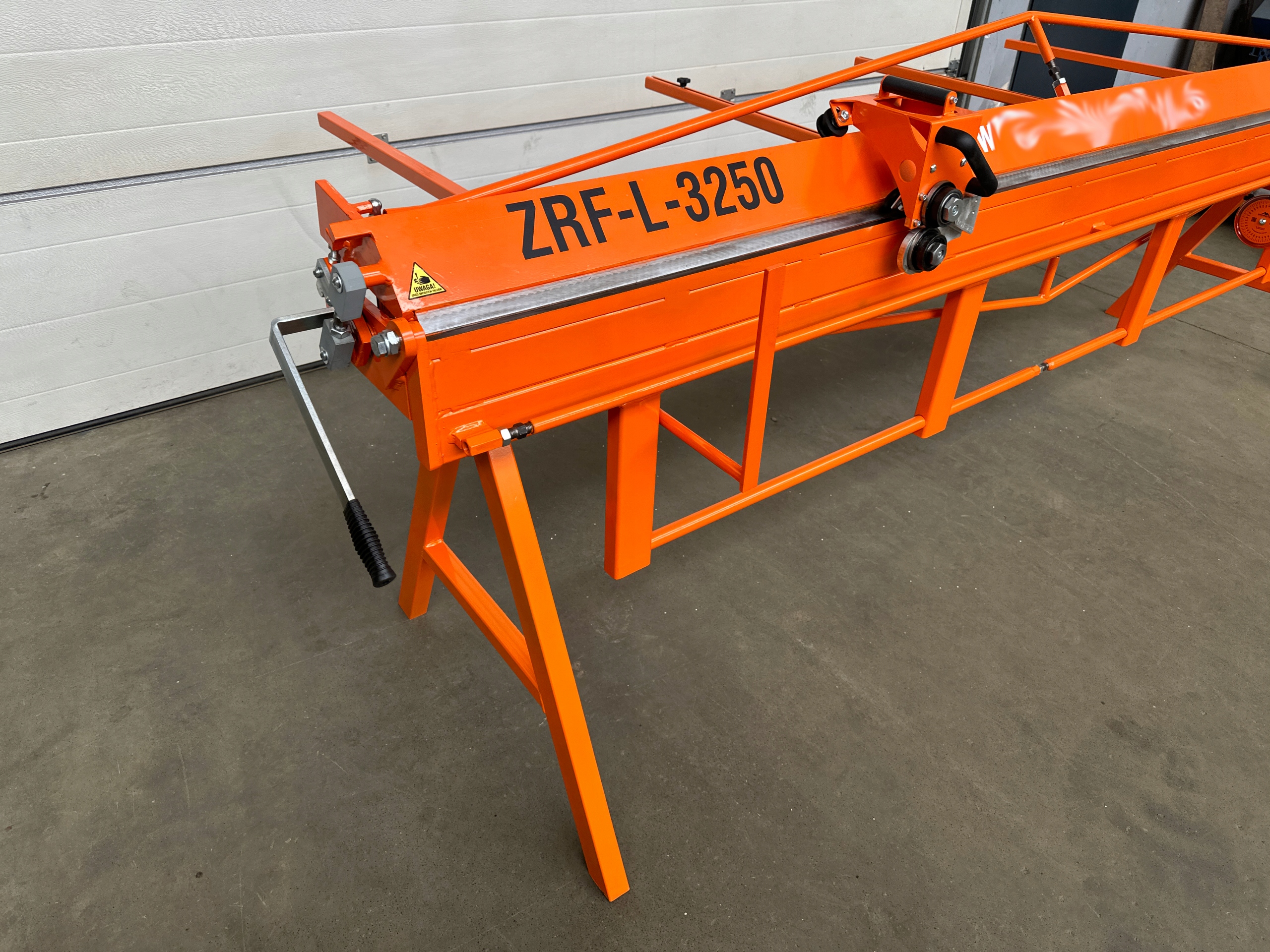 Предметом аукциона является гибочный станок ZRF-L-3250 мм. Ручной гибочный станок предназначен для ручного резка и гибка листового металла с соблюдением параметров, указанных производителем. Изготовлен из высшего качественная сталь, покрытая порошковым покрытием. Оборудование и мелкие детали защищены от коррозия цинком. Гибочный станок сконструирован таким образом, чтобы можно было корректировать отдельные элементов. Эта конструкция позволила получить очень высокую жесткость гибочного станка. Гибочная машина имеет также несколько регулировки механических компонентов, таких как: угол наклона прижимной балки, сила прижимной балки и установка симметричности положения балки относительно нижней балки. Нож диск во время резки листового металла может оставаться в направляющих на краю гибочного станка без необходимости его отложения. Все элементы конструкции гибочного станка отрегулированы, и нет необходимости в них регулирование.