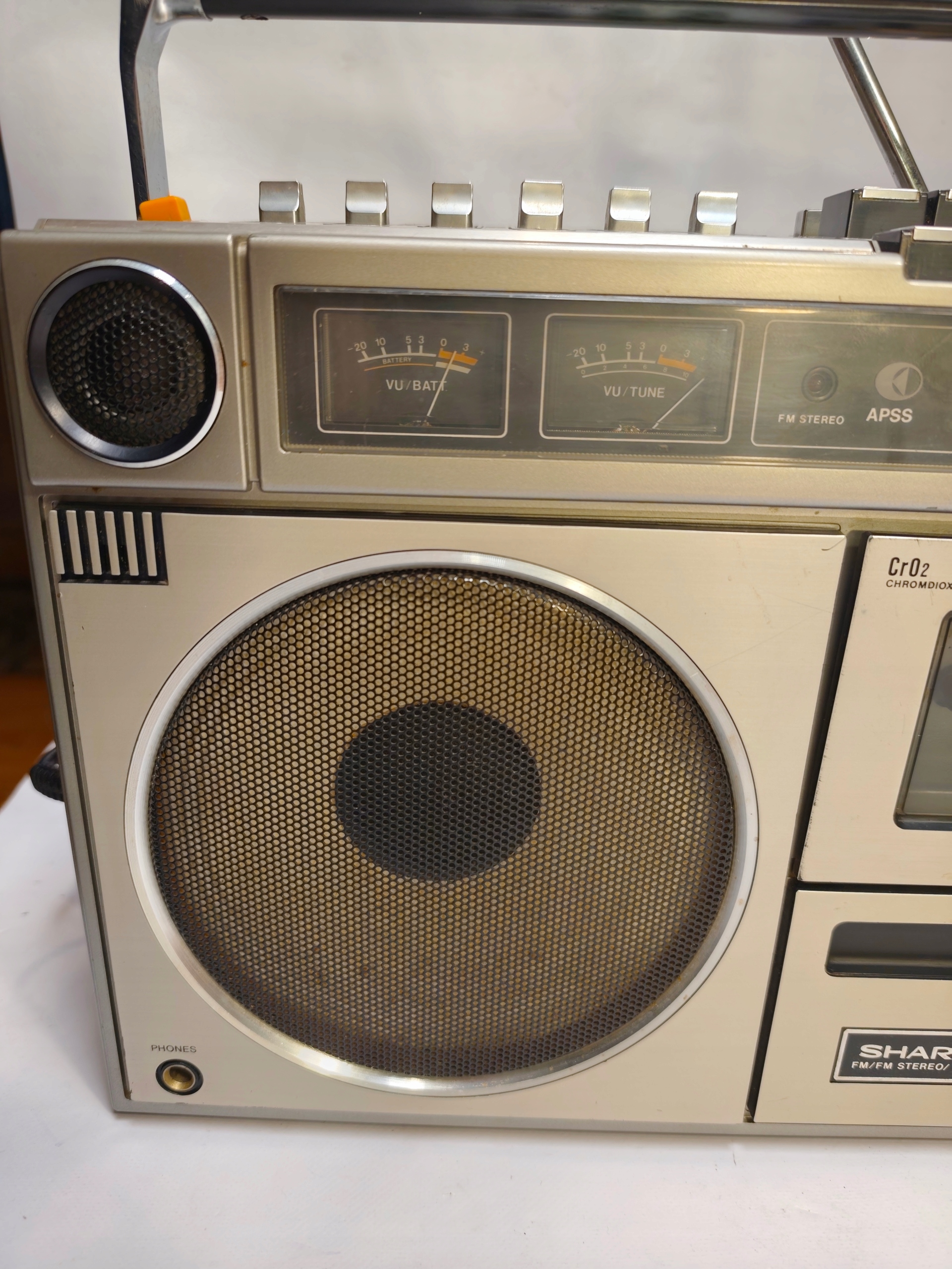 Potężny radiomagnetofon z tak zwanych ghettoblasterów od jednej z najbardziej uznanych firm w  ich produkcji, firmy ,,SHARP,,