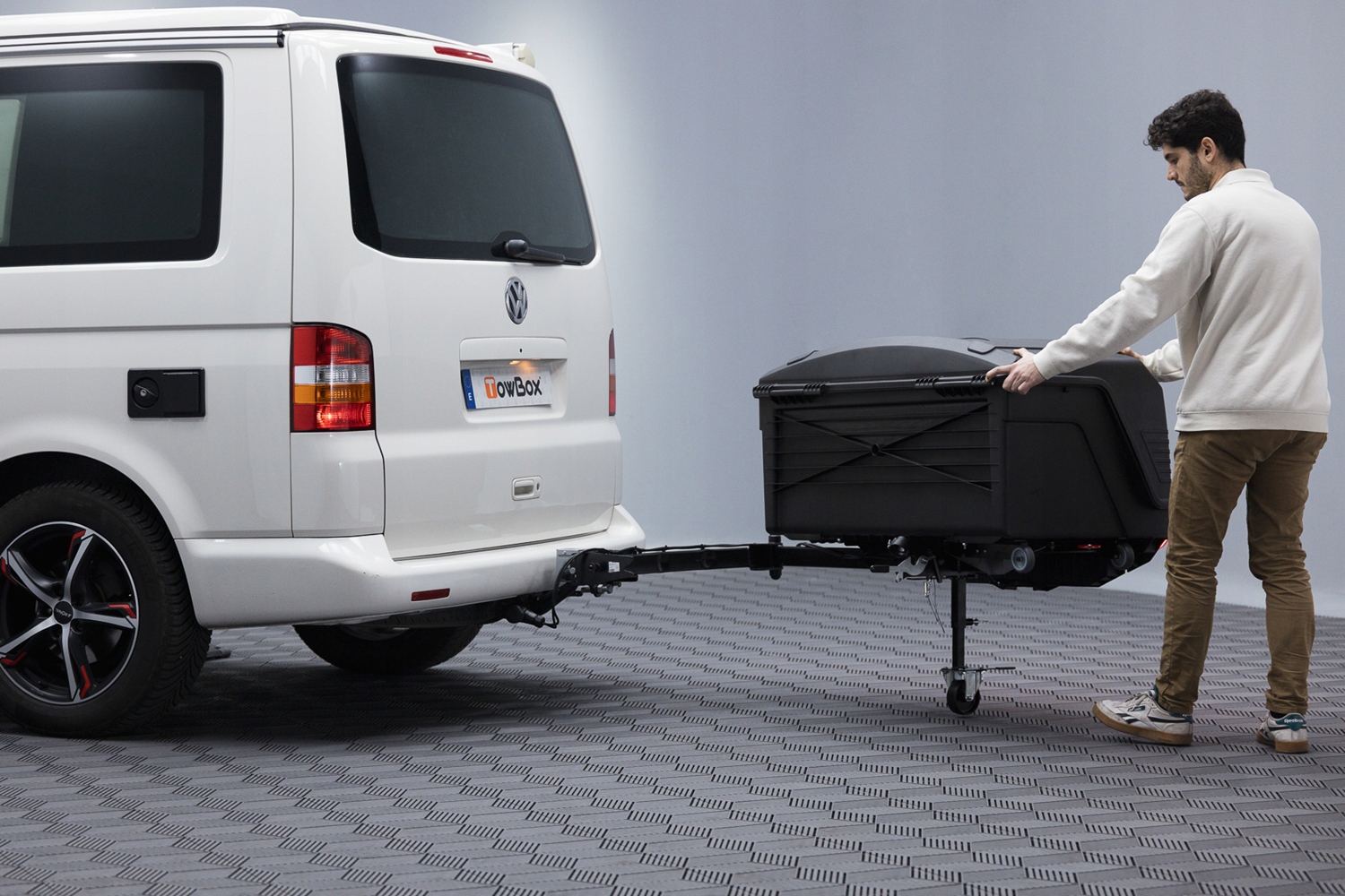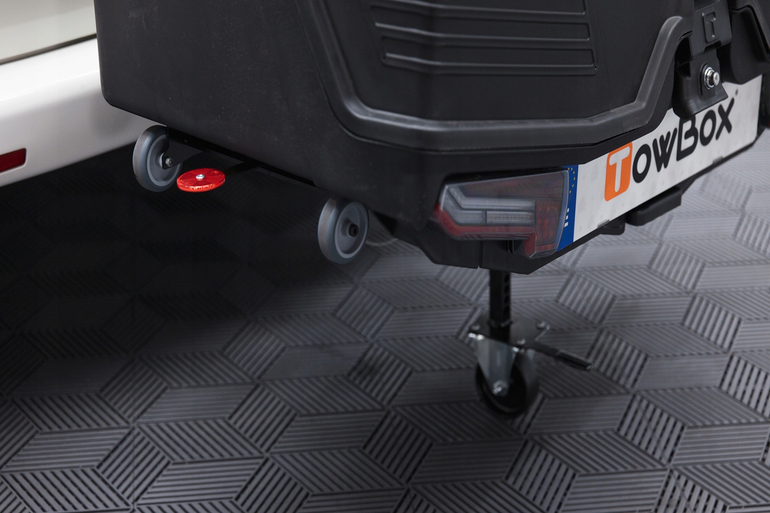 Box montowany jest bezpośrednio na standardowej kuli haka holowniczego zgodnej z europejską specyfikacją. Stabilne mocowanie realizowane jest za pomocą ergonomicznej dźwigni z zamkiem, która umożliwia szybkie i bezpieczne zamocowanie konstrukcji. Mechanizm odsuwania obsługiwany jest dźwignią umieszczoną pod tablicą rejestracyjną i pozwala zwiększyć odległość boxa od pojazdu w celu otwarcia drzwi lub klapy. Regulowana konstrukcja umożliwia dopasowanie boxa do różnych konfiguracji nadwozia, w tym pojazdów wyposażonych w koło zapasowe na tylnej klapie. Zintegrowane kółka transportowe pozwalają na wygodne przemieszczanie boxa oraz jego montaż przez jedną osobę.