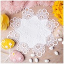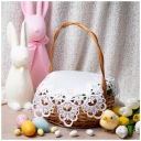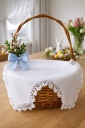 Elegancka serwetka / wkład do koszyczka wielkanocnego wykonana z białej tkaniny ozdobionej delikatną koronką. Idealna do przygotowania tradycyjnej święconki, dekoracji stołu wielkanocnego lub koszyka ze święconką.