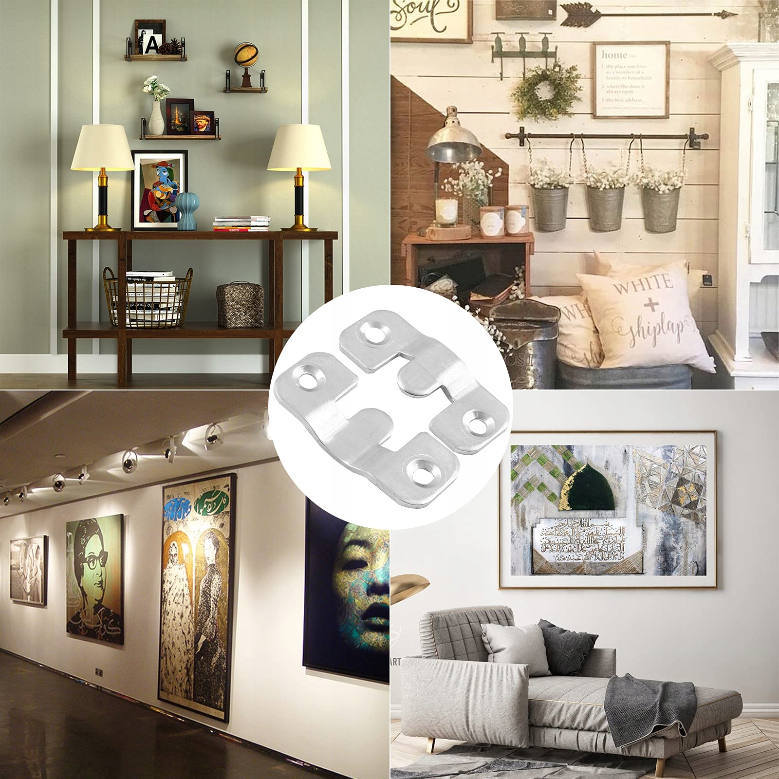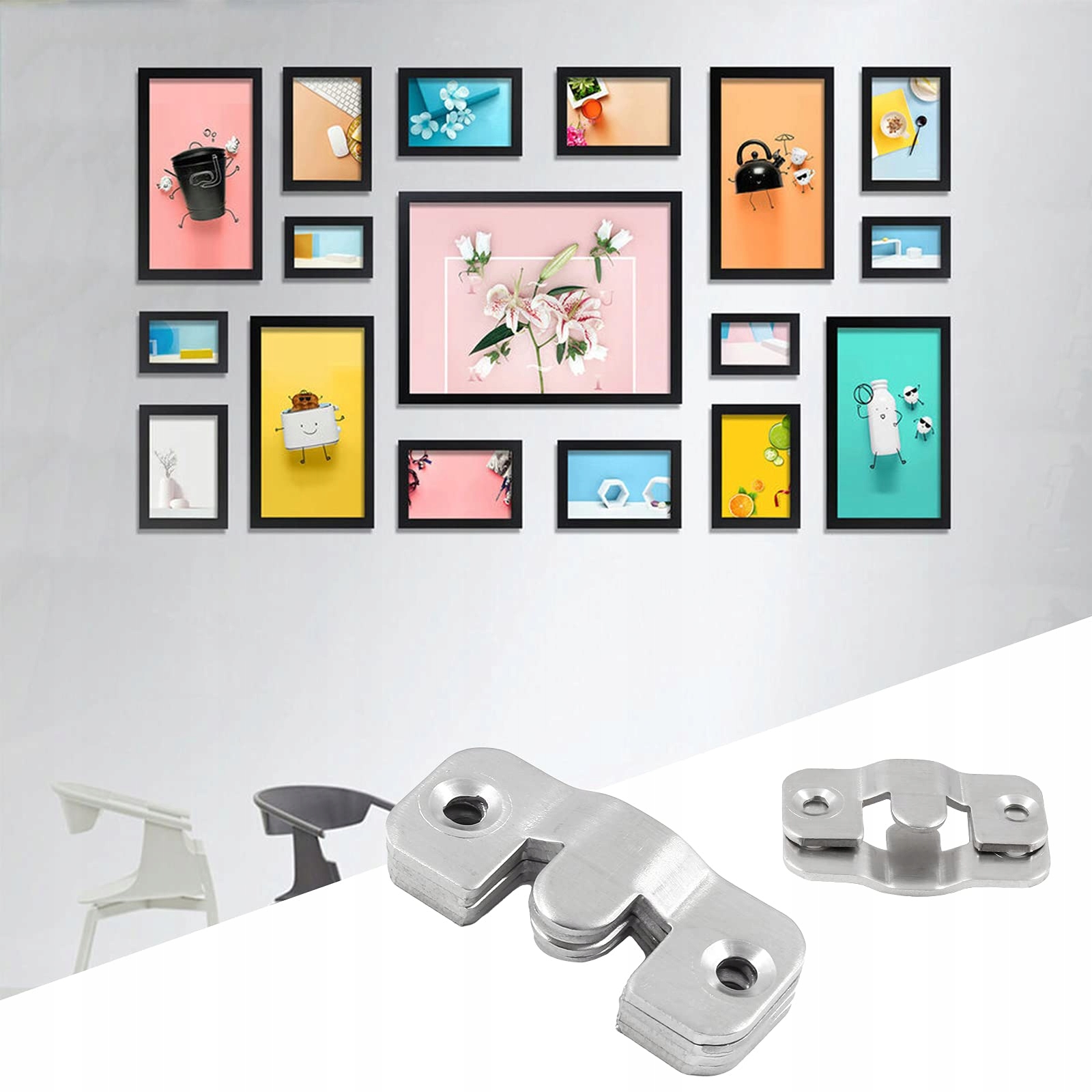Stosowany do montażu luster w łazienkach, przedpokojach i innych miejscach. Zaczepy męskie i żeńskie idealnie się łączą, a nośność wynosi do 10 kg na parę. Stal nierdzewna jest wodoodporna i odporna na wilgoć, zapobiegając ryzyku spadku z powodu korozji i zapewniając bezpieczne i stabilne mocowanie luster.Idealny do montażu ramek i obrazów dekoracyjnych w salonach, galeriach i innych miejscach. Ukryta konstrukcja nie psuje estetyki obrazów, a zaczepy łączą się precyzyjnie, umożliwiając łatwe demontaż i wymianę dekoracji, co sprawia, że układ ścian jest bardziej elastyczny.