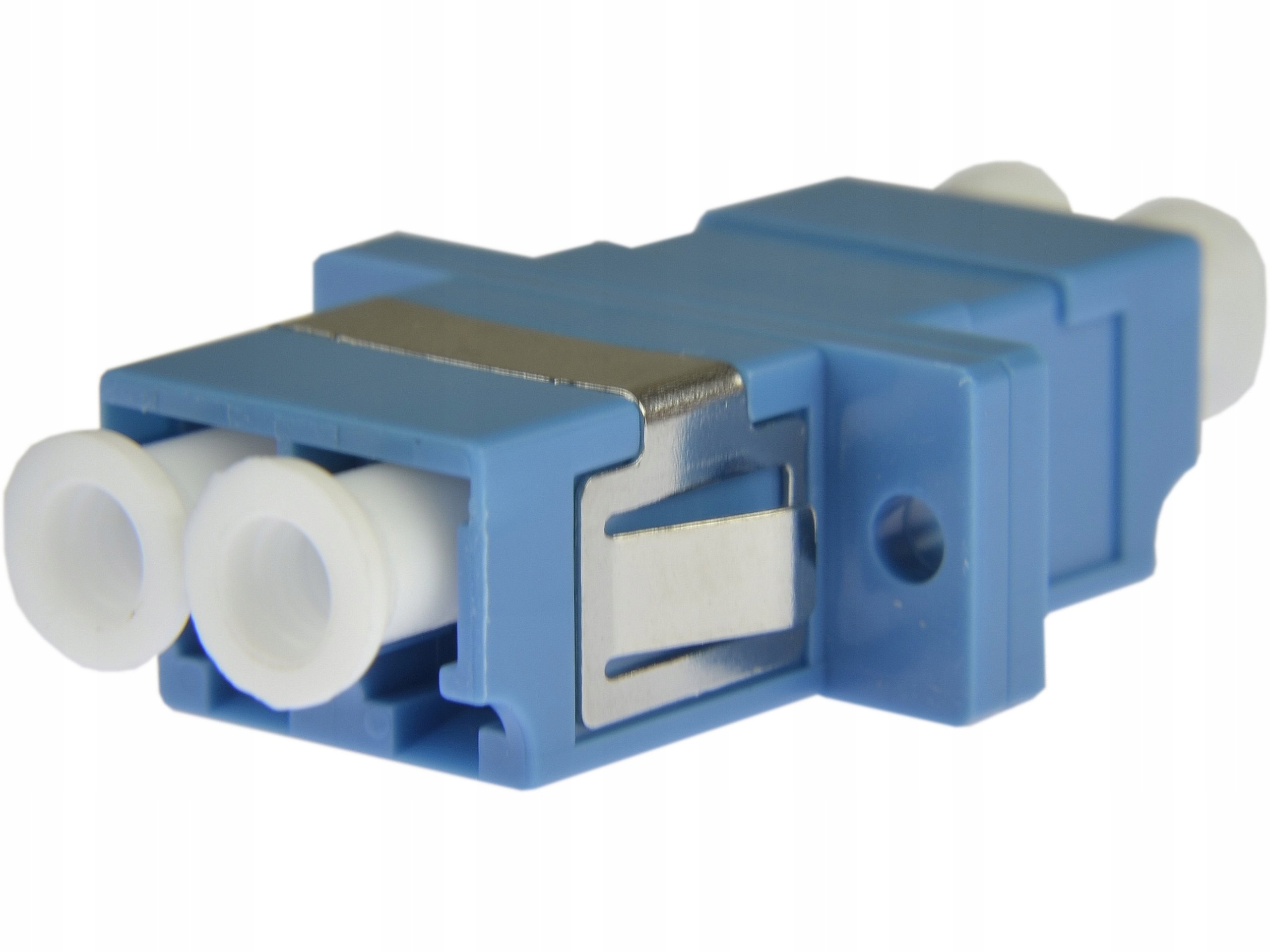 Adapter toru światłowodowego łączący ze sobą dwa złącza światłowodowe typu LC / PC SM Duplex.