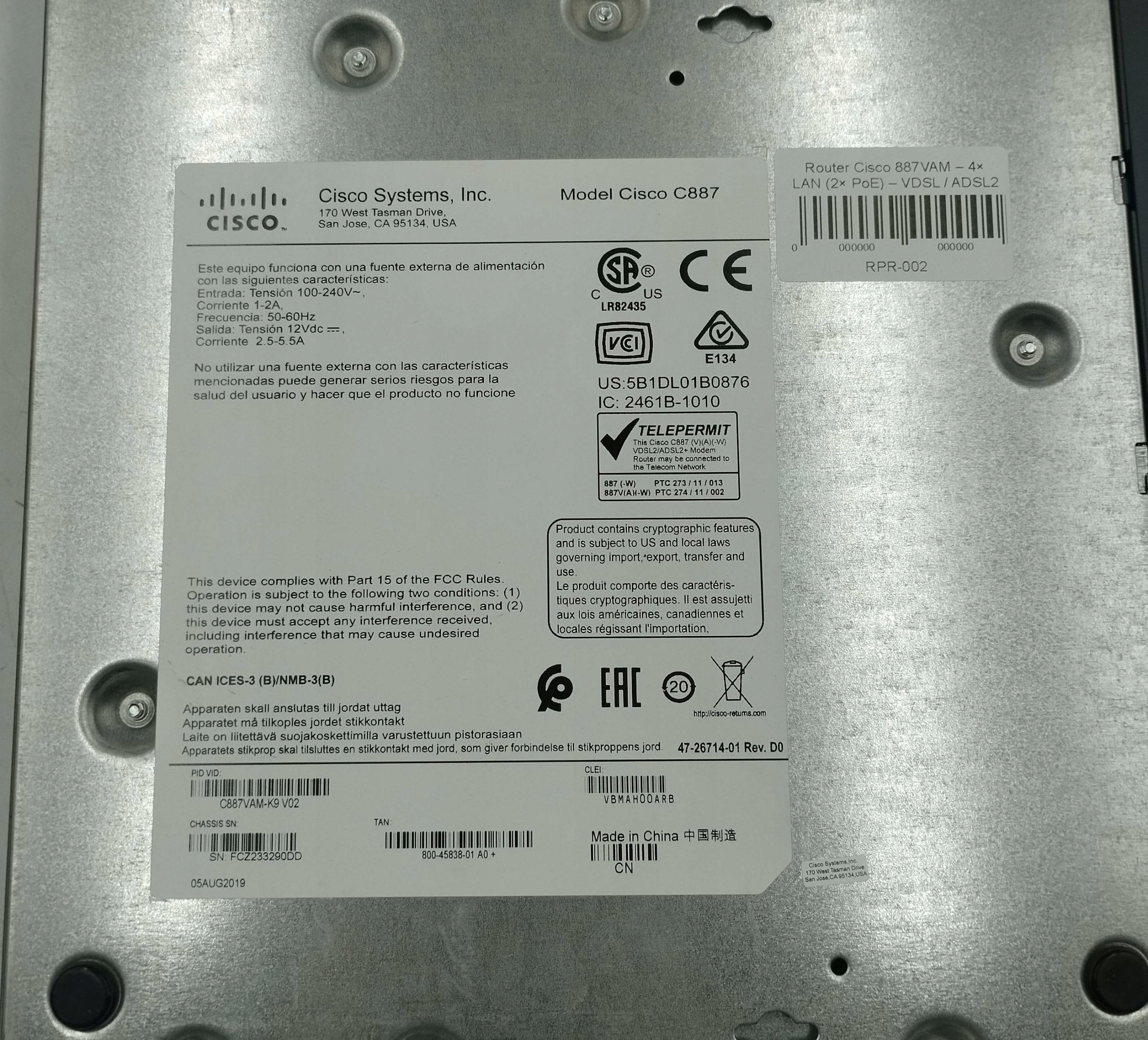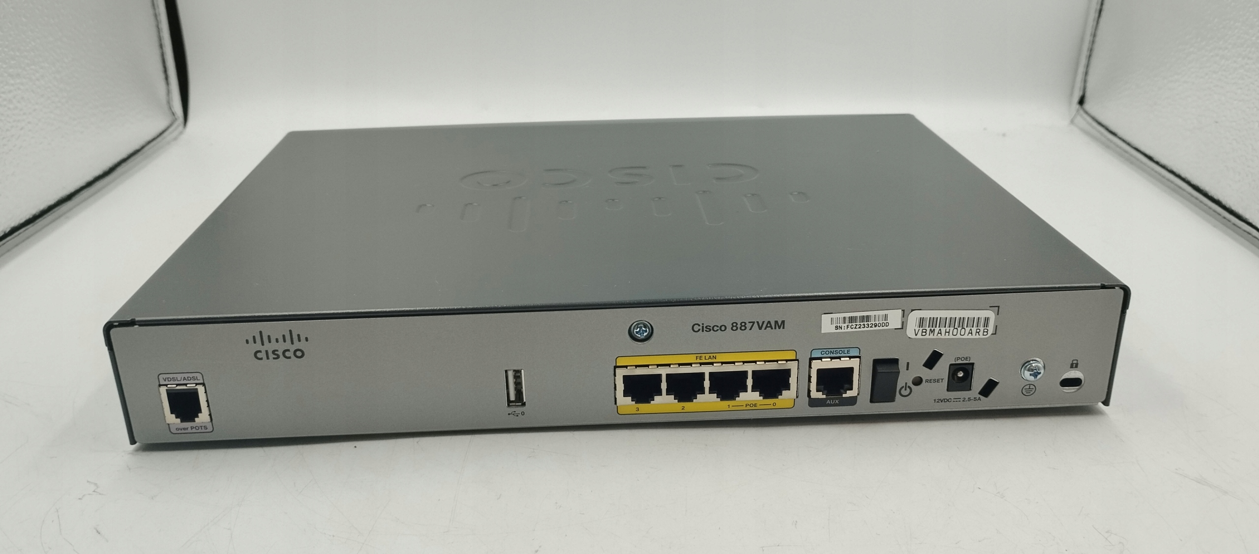 Profesjonalny router Cisco 800 Series – model 887VAM, przeznaczony do zastosowań biznesowych. Urządzenie 100% sprawne, przetestowane technicznie.