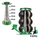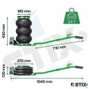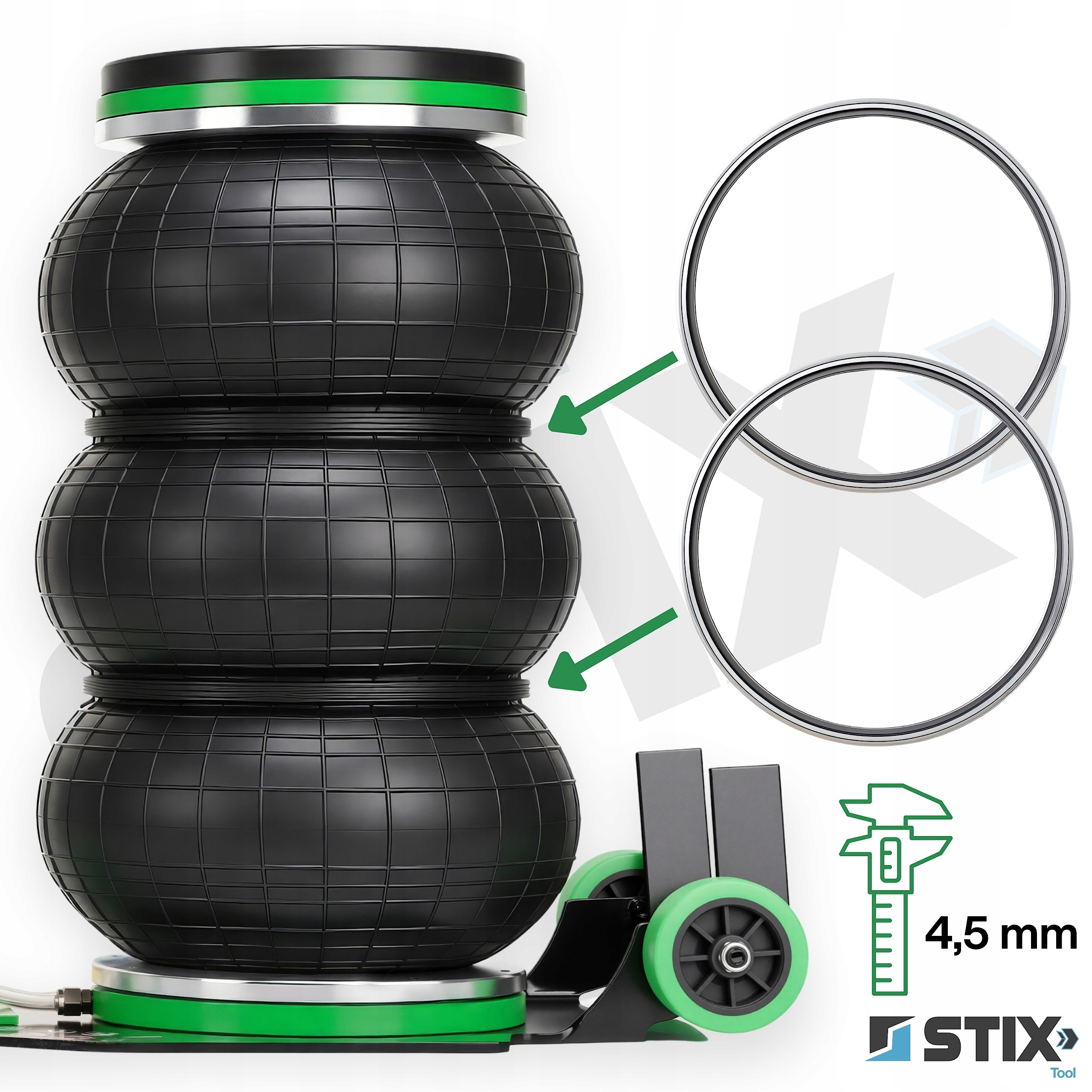 Podnośnik wykorzystuje 3-poziomowe miechy o średnicy 270 mm wykonane z wytrzymałej mieszanki gumowej.