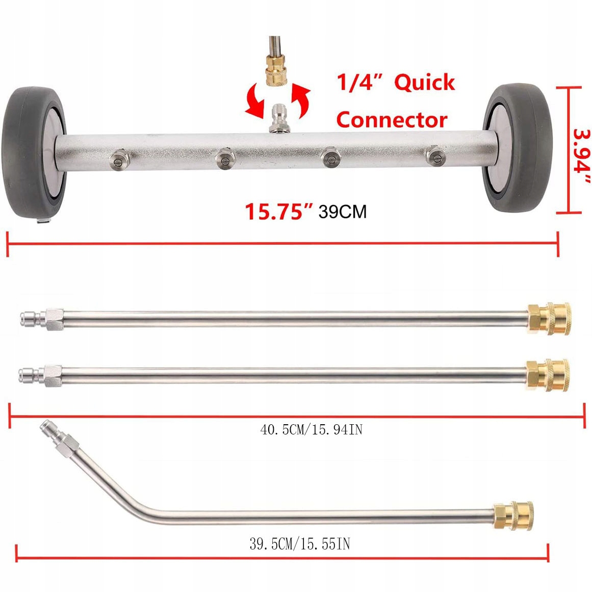 - 1 x 16-calowa miotła do myjki ciśnieniowej, 2 x 16-calowy przedłużacz do myjki ciśnieniowej, 1 x 15-calowy zakrzywiony pręt 90, 5 końcówek dyszy natryskowej. Wszystkie części mają szybkozłącze 1/4". Najlepiej, abyś był zadowolony z produktów i usług.