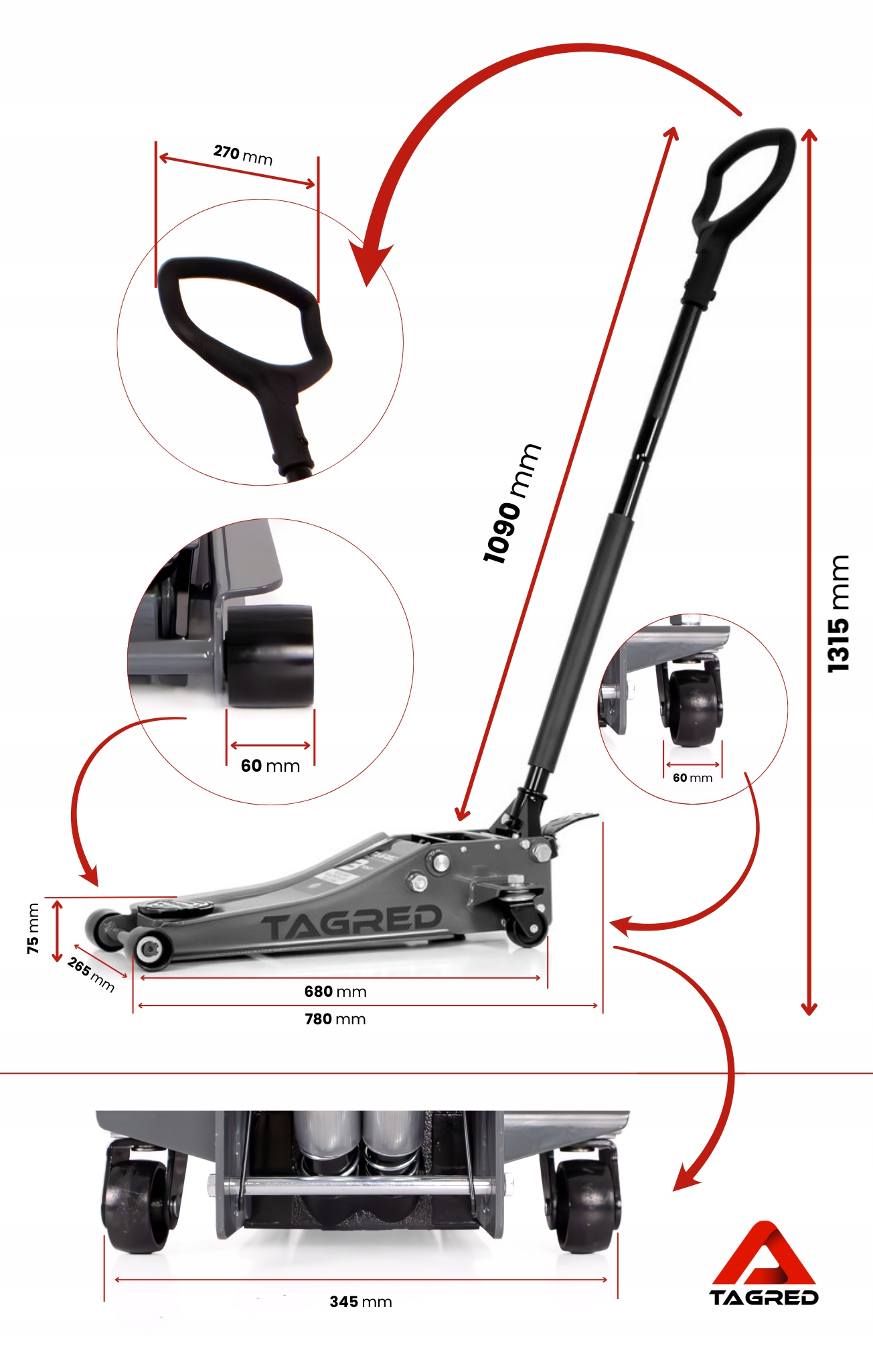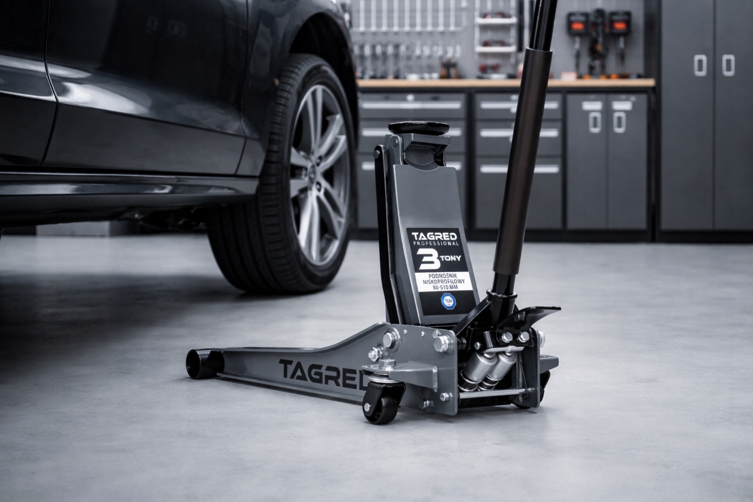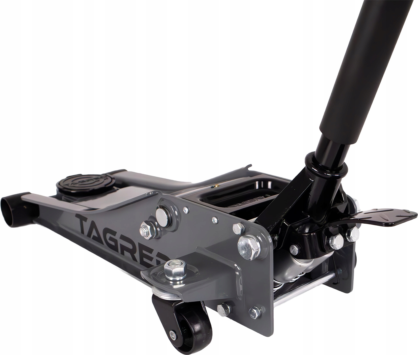 Podnośnik typu “żaba” od TAGRED wyposażony jest w trwałe, metalowe kółka, które nie załamią się pod ciężarem auta, nawet podczas długiej eksploatacji warsztatowej. Podnośnik oparty jest o solidny szkielet, dzięki któremu bez problemu wytrzyma nawet wiele sezonów w Twoim warsztacie/wulkanizacji.