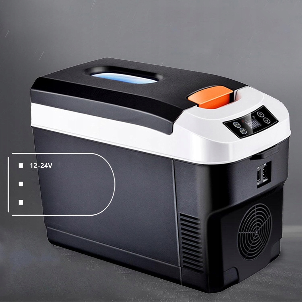 Gniazdo samochodowe 12 V/24 V. Efekt chłodzenia: W ciągu pół godziny, około 18-20°C poniżej temperatury otoczenia (np. z 25°C do 5°C). Podgrzewanie do około 55°C do 65°C. Docelowa temperatura jest regulowana w zakresie od -10 do 65°C. Obowiązująca temperatura otoczenia wynosi około 10-32°C.