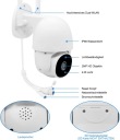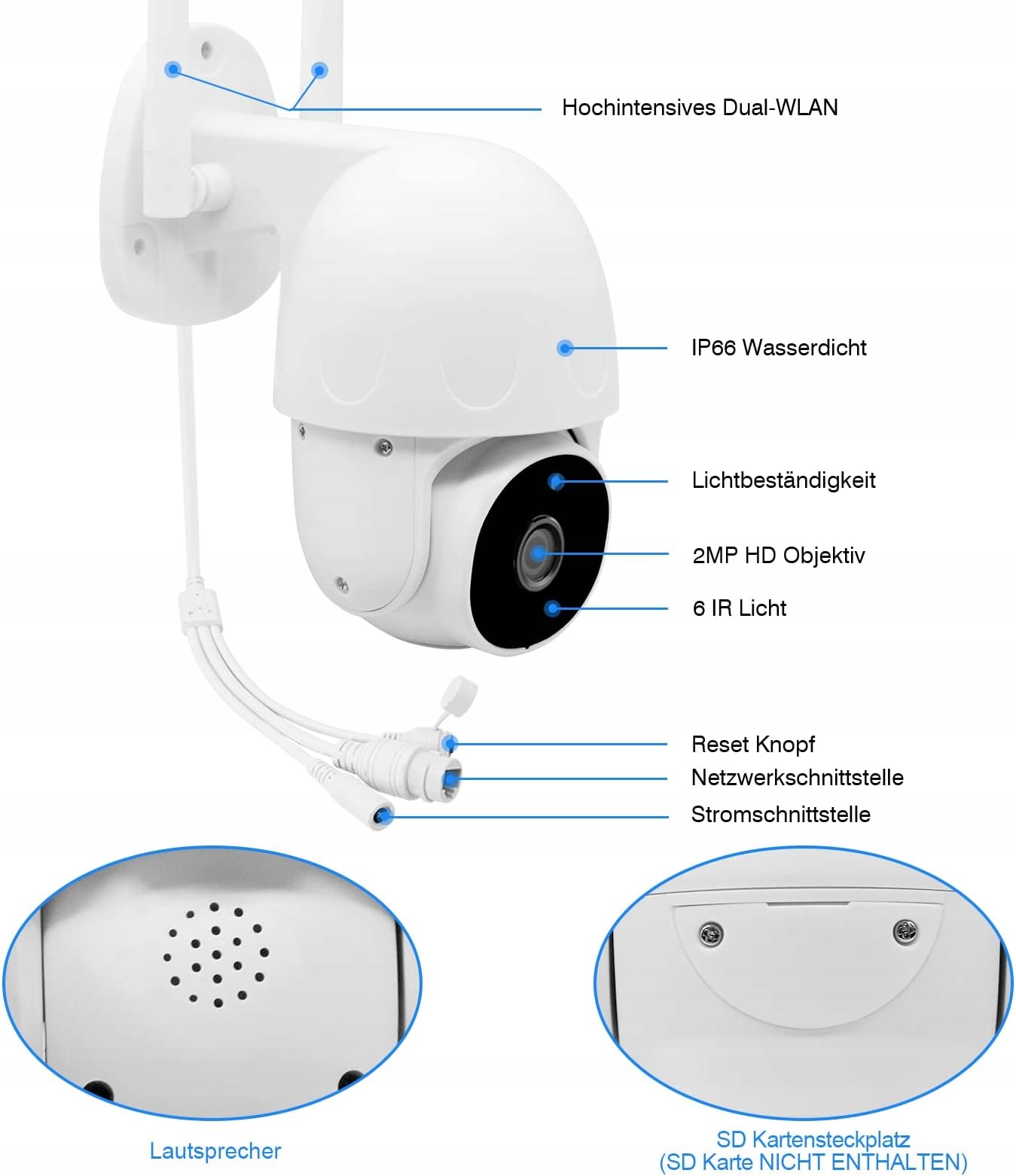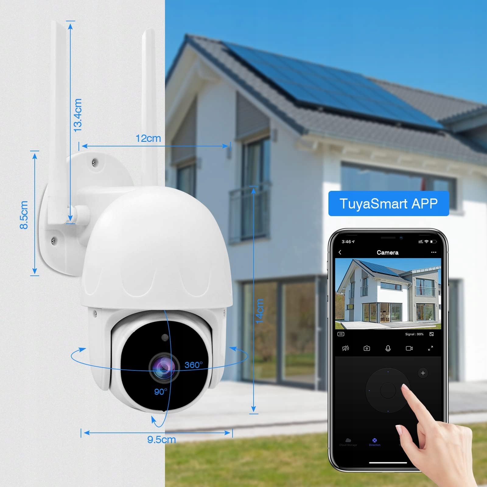 Kamera oferuje wszechstronne opcje archiwizacji nagrań dzięki slotowi na kartę microSD do 128 GB, umożliwiającemu lokalne przechowywanie materiału nawet do 15 dni w jakości ciągłej. Automatyczne nadpisywanie najstarszych plików zapewnia nieprzerwaną pracę bez konieczności ręcznego zarządzania pamięcią. Dedykowana aplikacja Tuya kompatybilna z systemami Android i iOS pozwala na zdalny podgląd, sterowanie kierunkiem obrotu, odtwarzanie nagrań oraz zarządzanie ustawieniami z dowolnego miejsca na świecie. Zasilanie 12V o mocy 3W zapewnia energooszczędną i niezawodną pracę urządzenia przez cały rok.