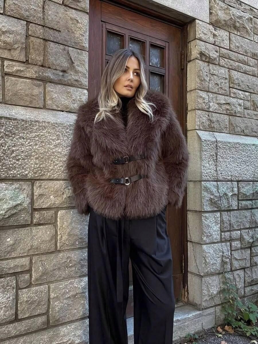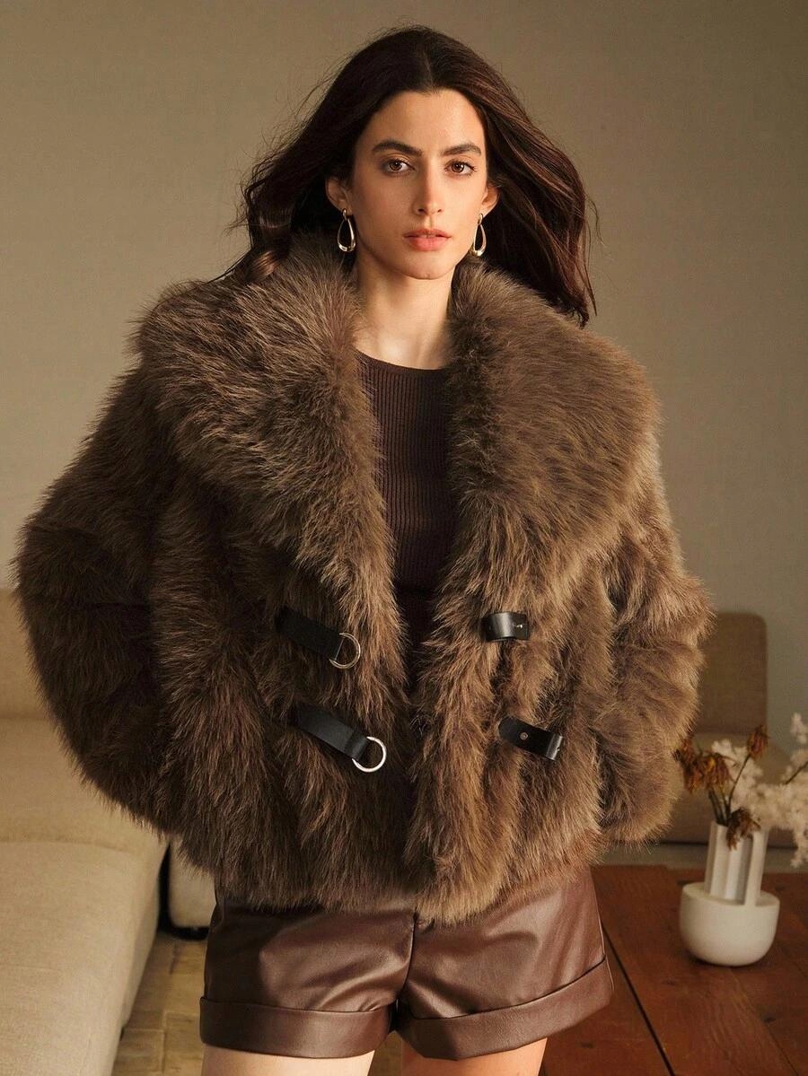 SHEIN FUTRO DAMSKIE Z KOŁNIERZEM S