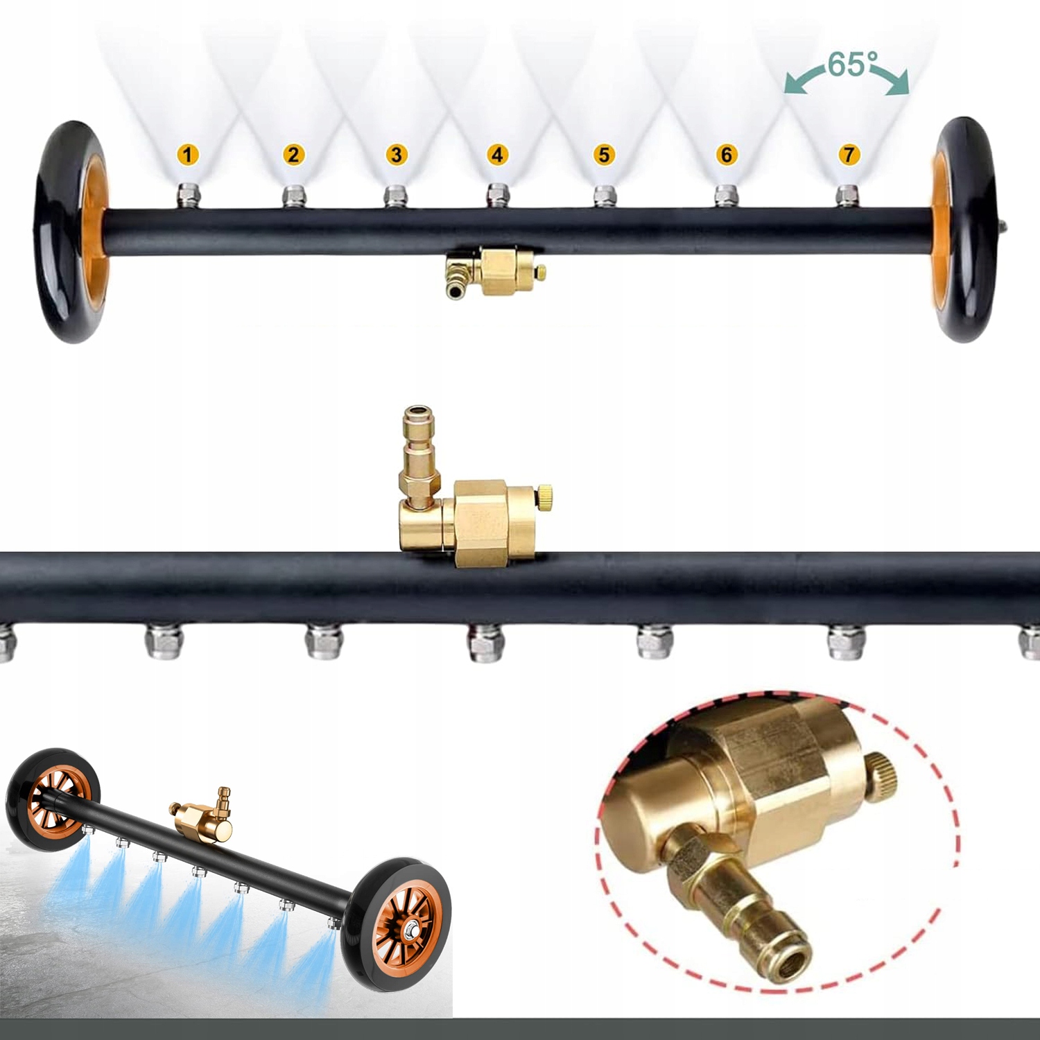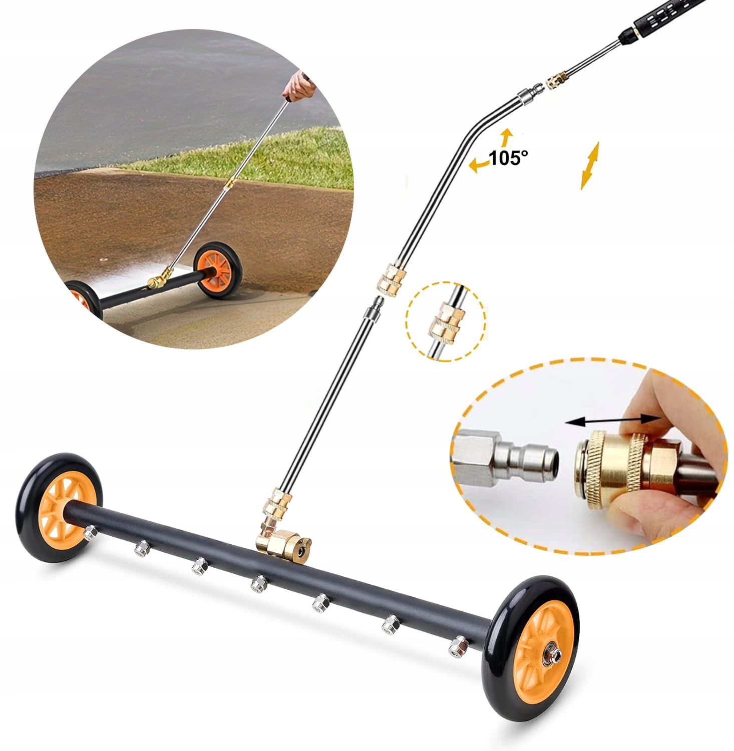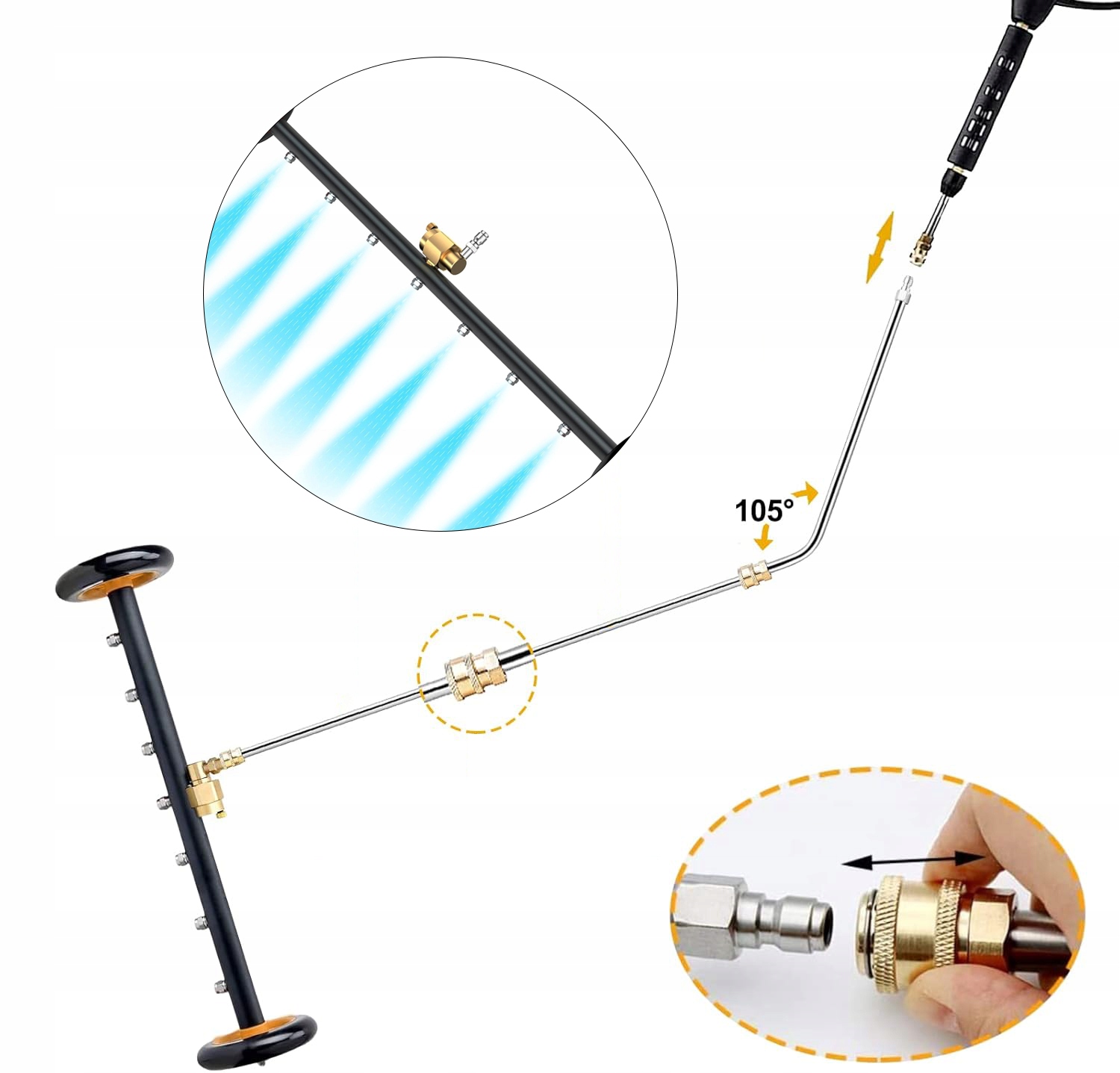 2 funkcje w 1: myjka ciśnieniowa Pathway Cleaner (długość: 3/4 cala), 1-częściowa rura kątowa 60 stopni (długość: 1/4 cala) i 2-częściowa rura przedłużająca do myjki ciśnieniowej. Wszystkie części mają szybkozłącze 1/4".