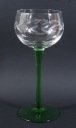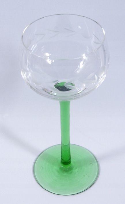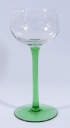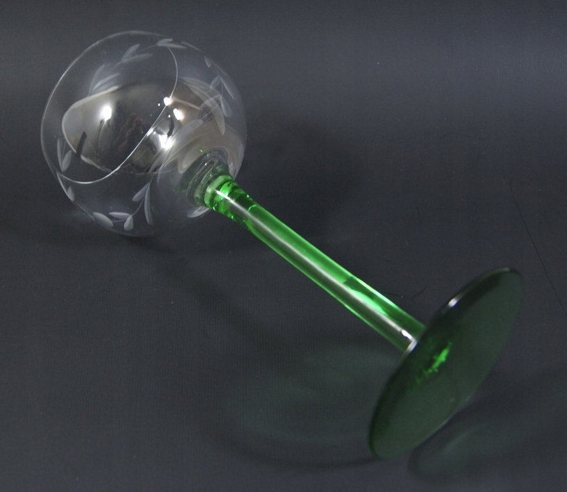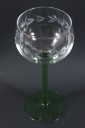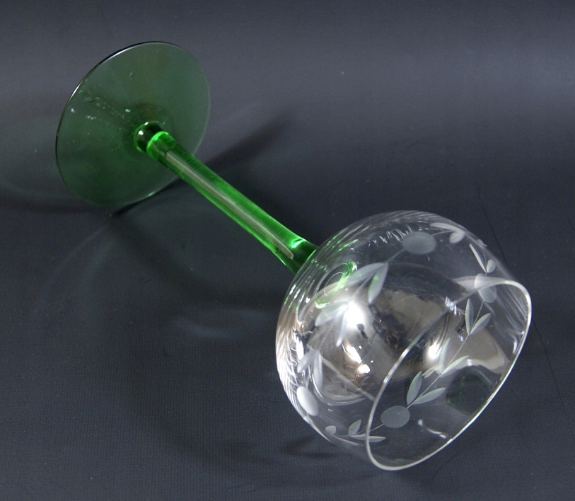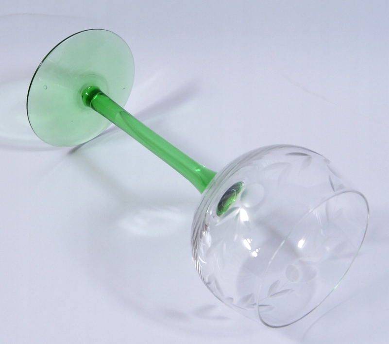 Przedmiotem aukcji jest śliczny, stary kieliszek, wykonany jest z zielonego i bezbarwnego szkła kryształowego, czasza zdobiona szlifem, szkło uranowe, świeci przy lampie uv.