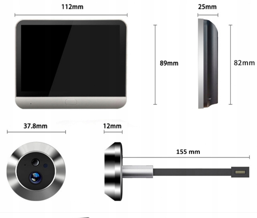 Wideo wizjer do drzwi WiFi 2.4GHz z czujnikiem ruchu oraz noktowizorem