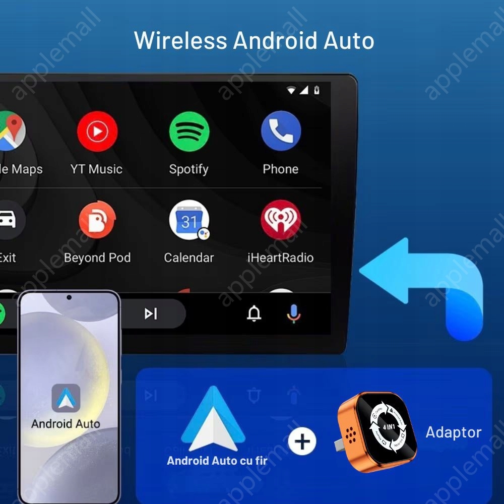 Konwersja bezprzewodowa: przekształca fabrycznie przewodowy CarPlay lub Android Auto w połączenie bezprzewodowe, eliminując potrzebę stosowania kabli podczas codziennych dojazdów do pracy