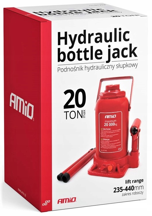 Wykonany jest w całości ze stali, jest wytrzymały i niezastąpiony w garażu oraz warsztacie. Jego wysokość to minimalna wynosi 235 mm, wysuwa się na wysokość 380 mm, a dodatkowo wyposażony jest w wykręcany trzpień, który zwiększa wysokość podnoszenia dodatkowo o 60 mm, czyli razem osiągamy wysokość 440mm. Wyposażony jest również w stalowy uchwyt ułatwiający przenoszenie.
