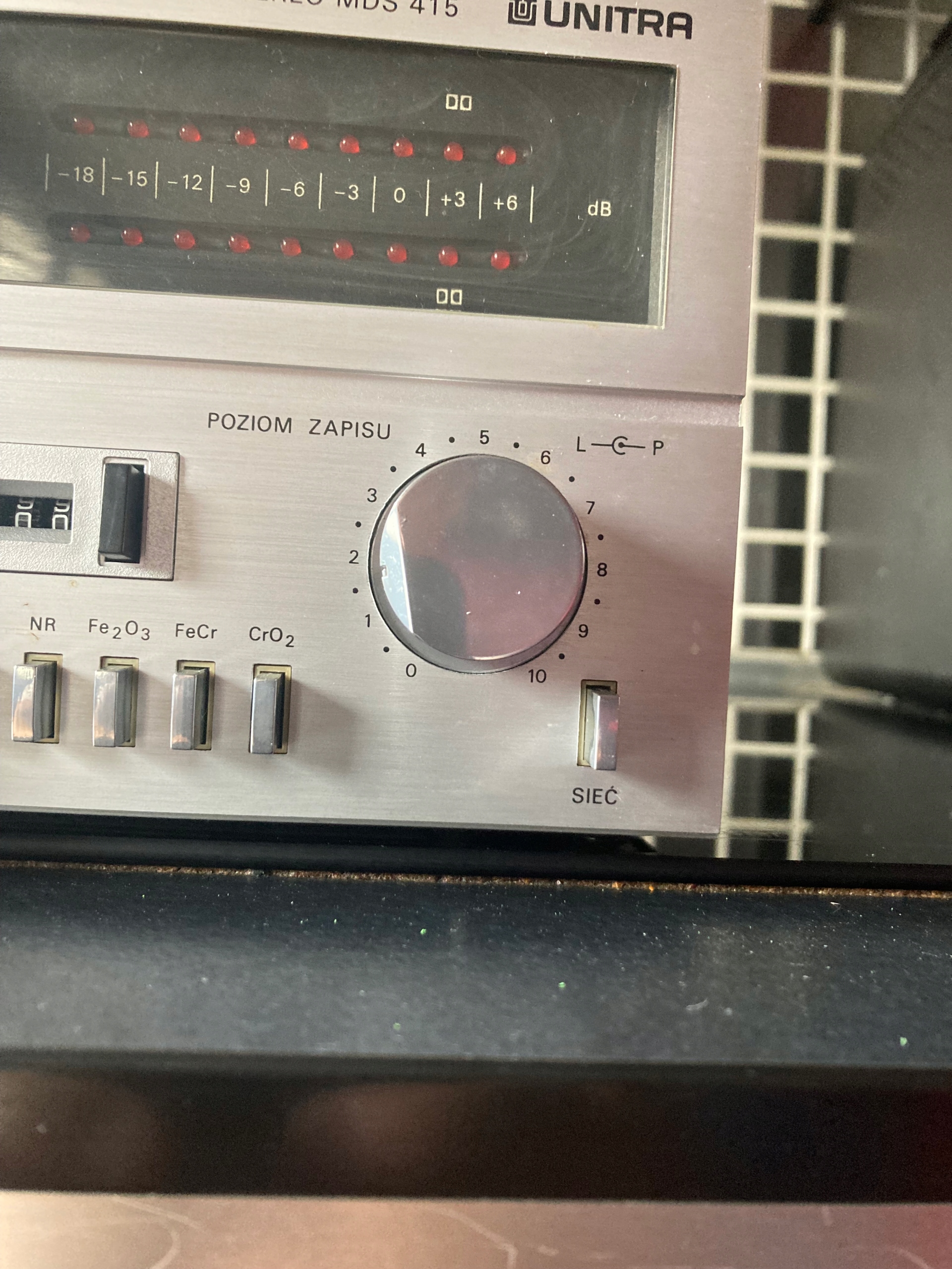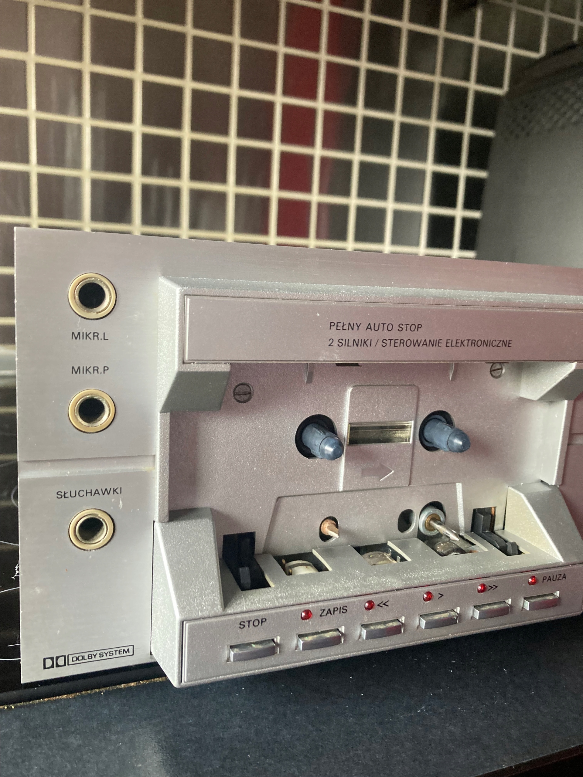 WITAM SPRZEDAM W IDEALNYM STANIE WIZUALNYM MAGNETOFON UNITRA MDS 415 KTÓRY JEST ELEMENTEM ZESTAWU WIEŻOWEGO Z SERII MINI W KOLORZE SREBRNYM PRZEDNI ALUMINIOWY PANEL JEST W IDEALNUM STANIE NIE POSIADA ŻADNYCH RYSEK WSZYSTKIE NAPISY SĄ DOSKONALE WIDOCZNE GAŁECZKA I PRZYCISKI IDEALNE BŁYSZCZĄ JAK WIADOMO CO BLASZANA OBUDOWA RÓWNIEŻ W DOSKONAŁYM STANIE JEŚLI ZAŚ CHODZI O STAN TECHNICZNY TO NIE MAM POJĘCIA WŁĄCZA SIĘ, DIODY SIĘ ZAPALAJĄ A W ŚRODKU ZALEGA WARSTWA KURZU Z TEGO CO PAMIĘTAM TO SPRZĘT NIGDY NIE BYŁ W NAPRAWIE WSZĘDZIE WIDOCZNE SĄ PLOMBY PYTAŁEM OJCA TO POWIEDZIAŁ ŻE PASKI SIĘ POZRYWAŁY I WÓWCZAS MAGNETOFON STRACIŁ SWOJĄ PRZYDATNOŚĆ A JEGO MIEJSCE ZAJAŁ CD. TERAZ ROLE SIĘ ODMIENIŁY WIĘC SPRZĘT WRACA DO ŁASK Z PEWNOŚCIĄ MUSI PRZEJŚĆ GRUNTOWNY PRZEGLĄD WRAZ Z CZYSZCZENIEM ALE STAN WIZUALNY W PEŁNI WYNAGRODZI WSZYSTKO BO PO TYCH ZABIEGACH BĘDZIE JAK NOWY SPRZĘT BĘDZIE DOSKONALE ZABEZPIECZONY DO WYSYŁKI POLECAM MAŁO JUŻ W TAKIM PIĘKNYM STANIE