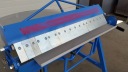 -OPORY PRZEDNIE – (Wyposażenie dodatkowe) - Pozwalają ustawić szerokość cięcia od przodu zaginarki. Konstrukcja oporów pozwala na obrócenie ich o 180° oraz ich powrót w to samo położenie. Bardzo przydatne do cięcia blach seryjnie. Ograniczniki przednie stosuje się w pracach powtarzalnych. Zachowują one wielokrotnie ten sam wymiar długościowy ciętej blachy. Szybki i dokładny pomiar ciętej blachy można uzyskać poprzez wykorzystanie zainstalowanej miarki.
