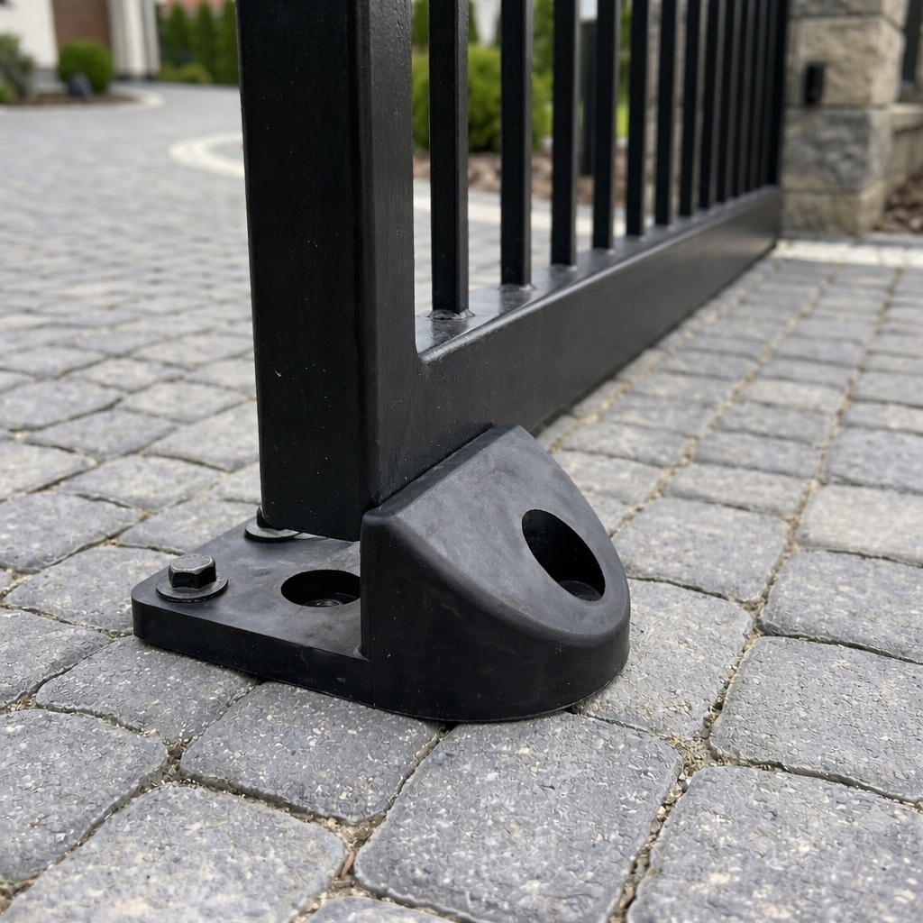 Kluczem do komfortu jest gruby, gumowy odbój, który całkowicie eliminuje dźwięk uderzenia metalu o metal. Dzięki temu brama domyka się cicho, co docenisz Ty i Twoi sąsiedzi, zwłaszcza późnym wieczorem.
