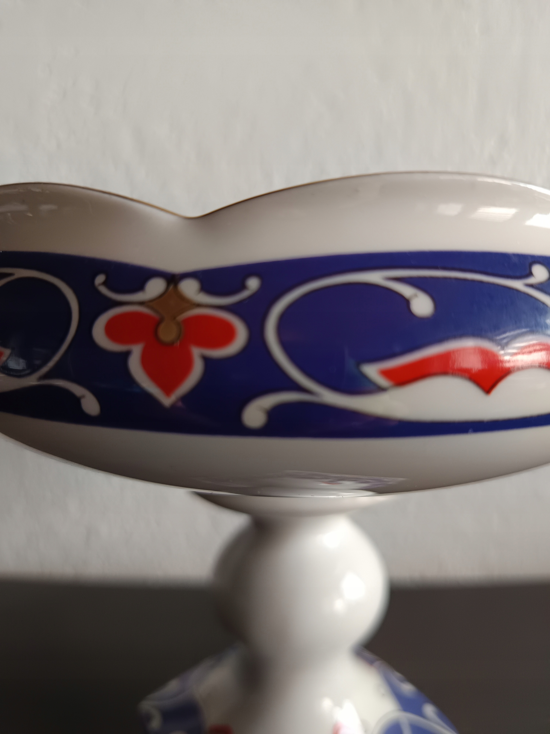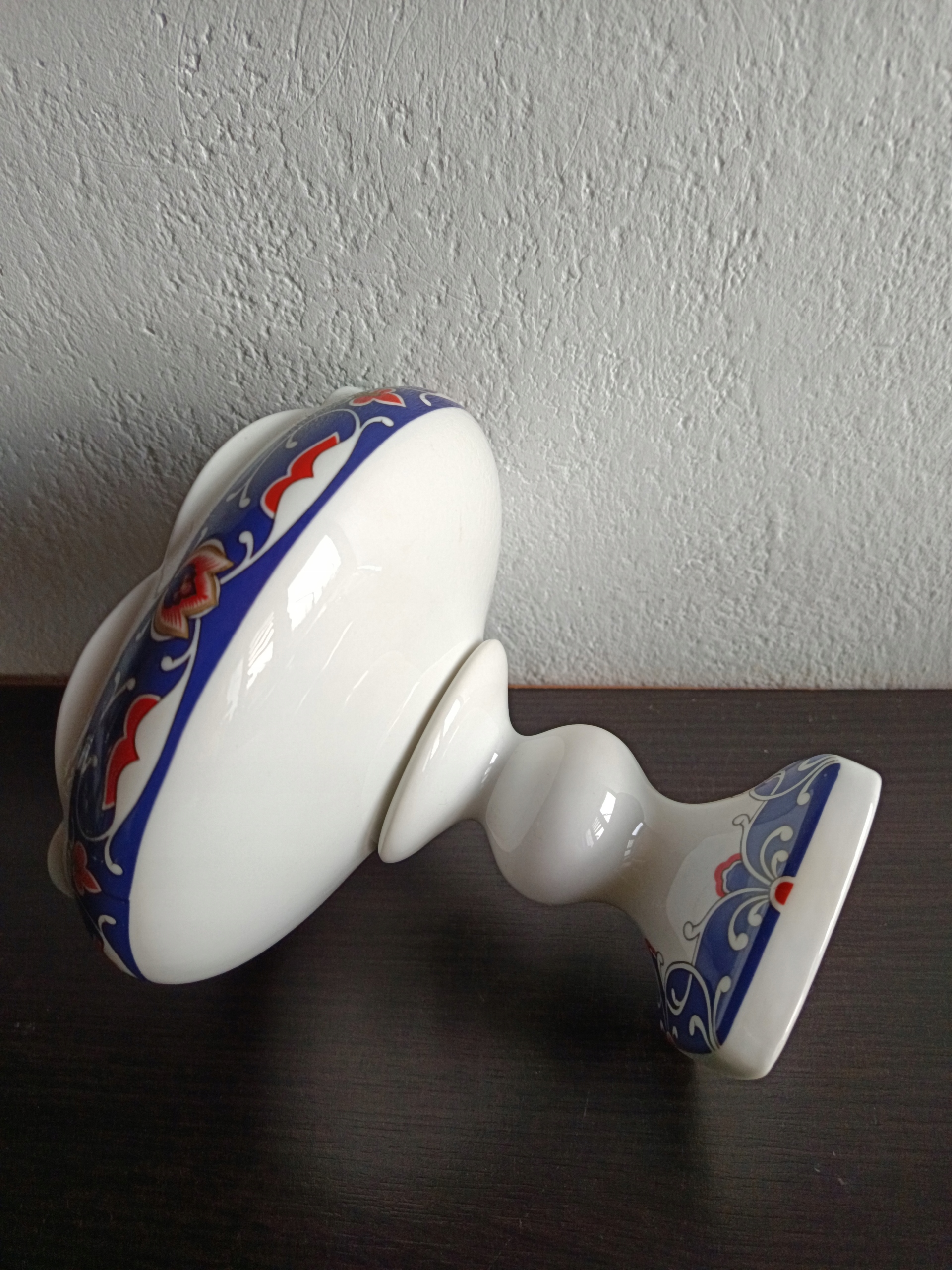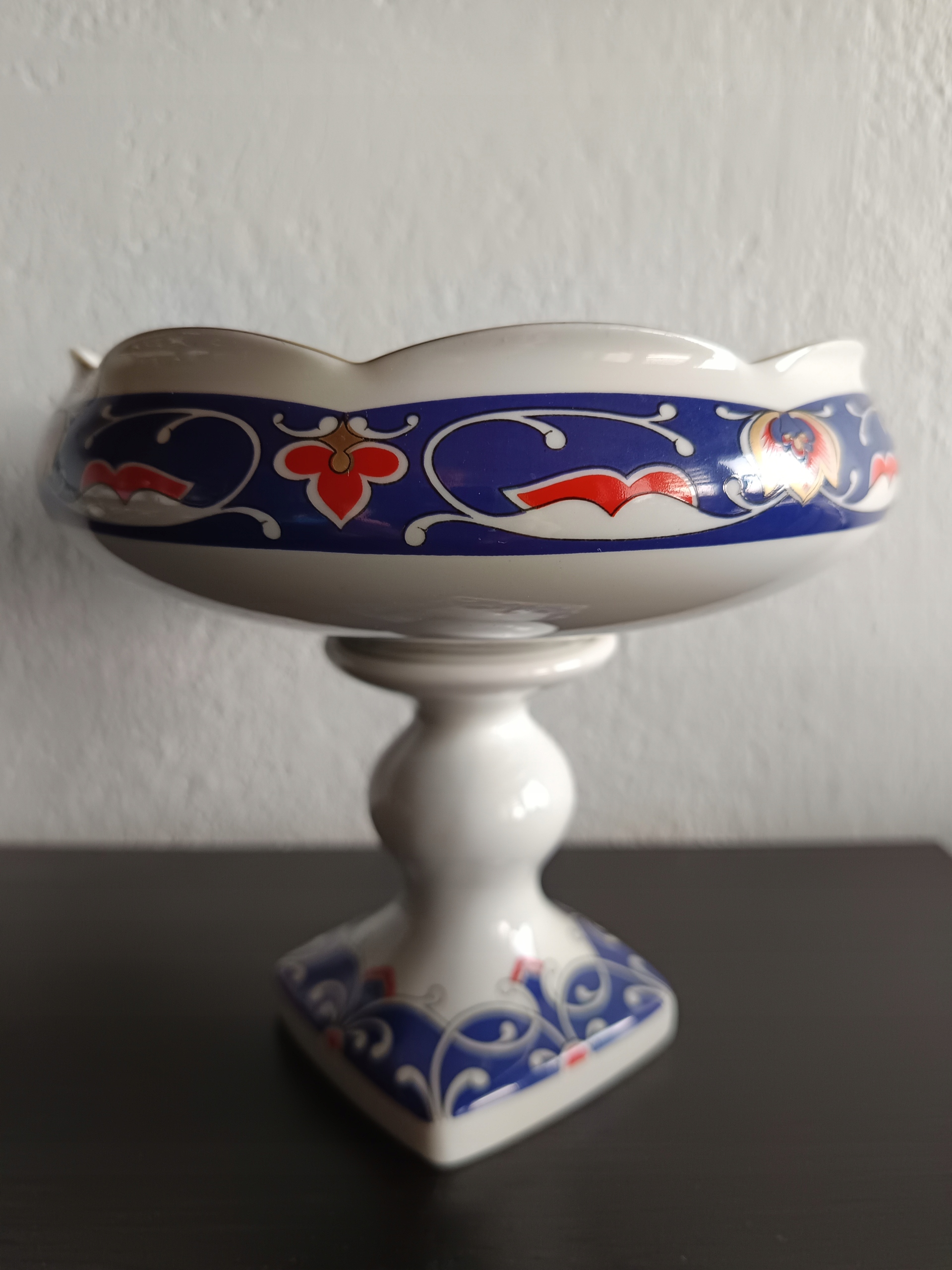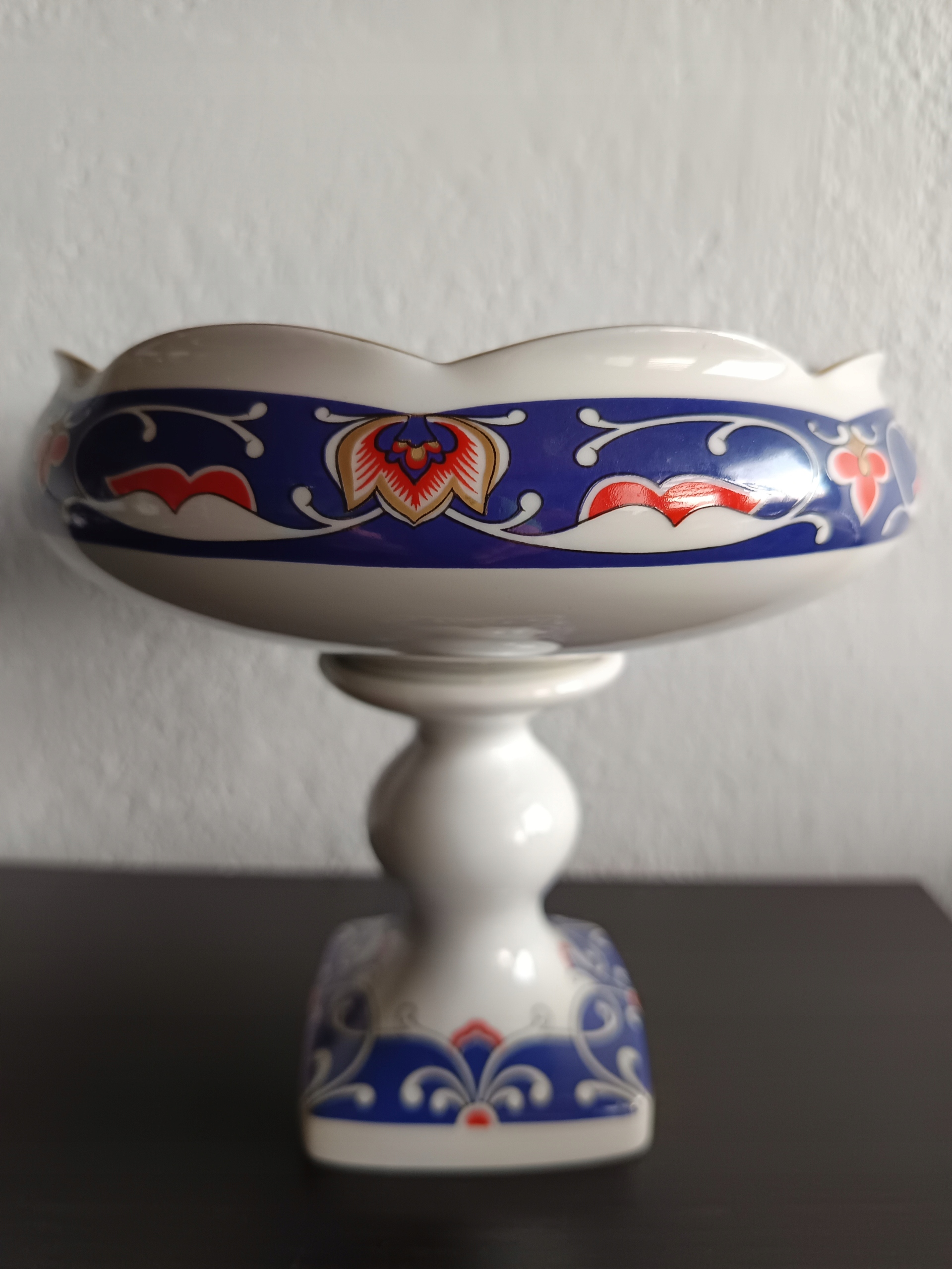 Porcelanowa patera na stopie.