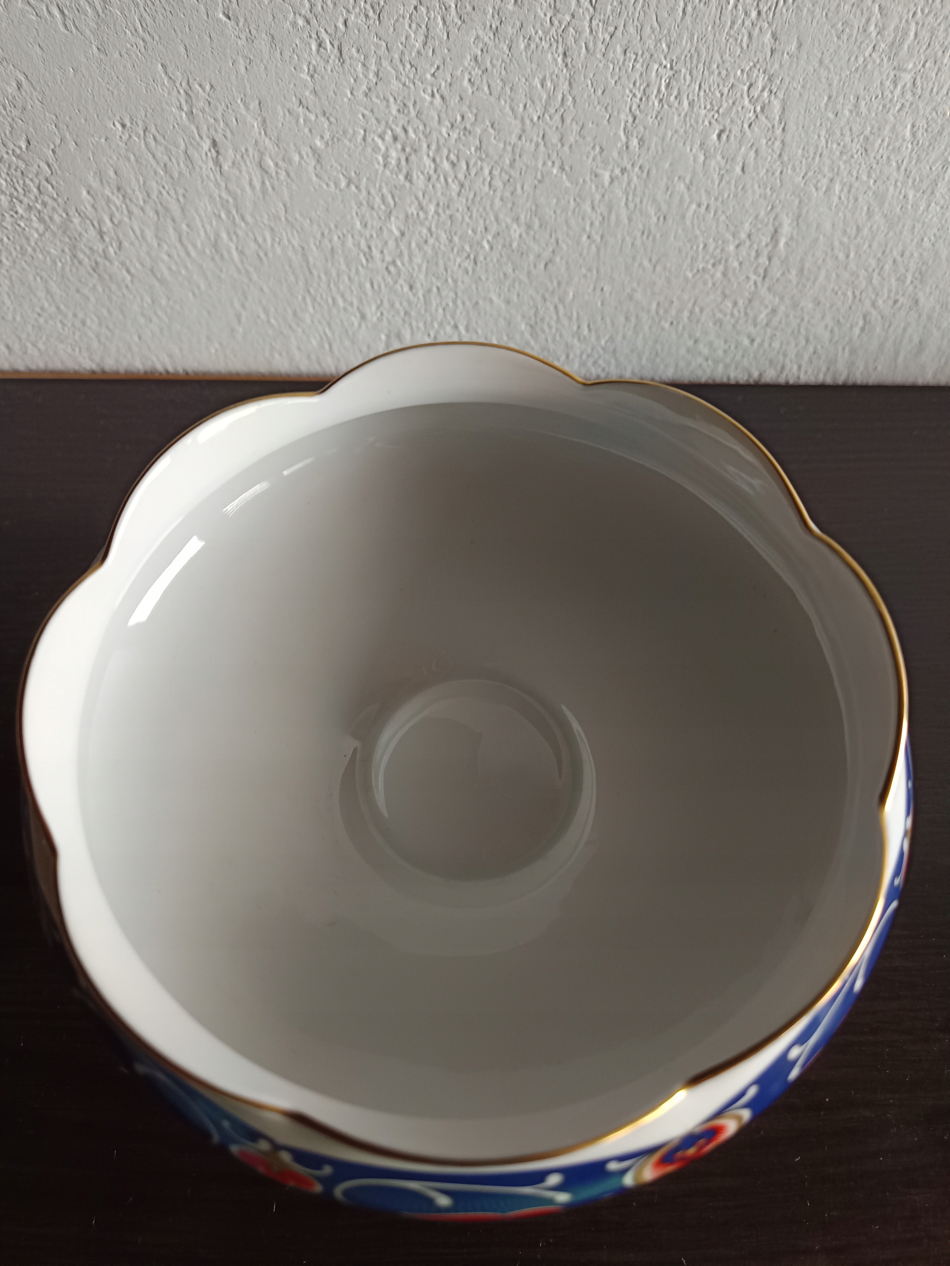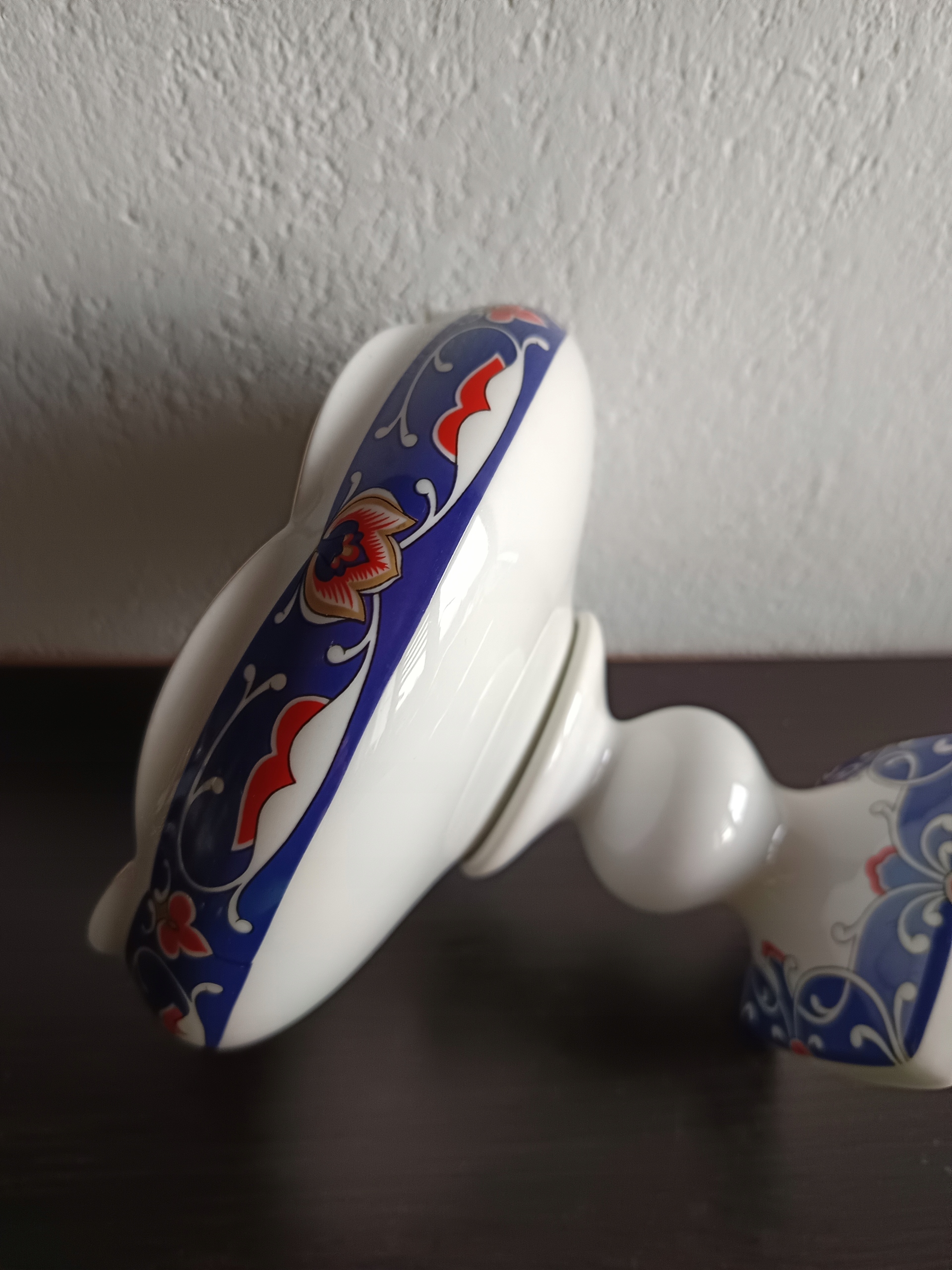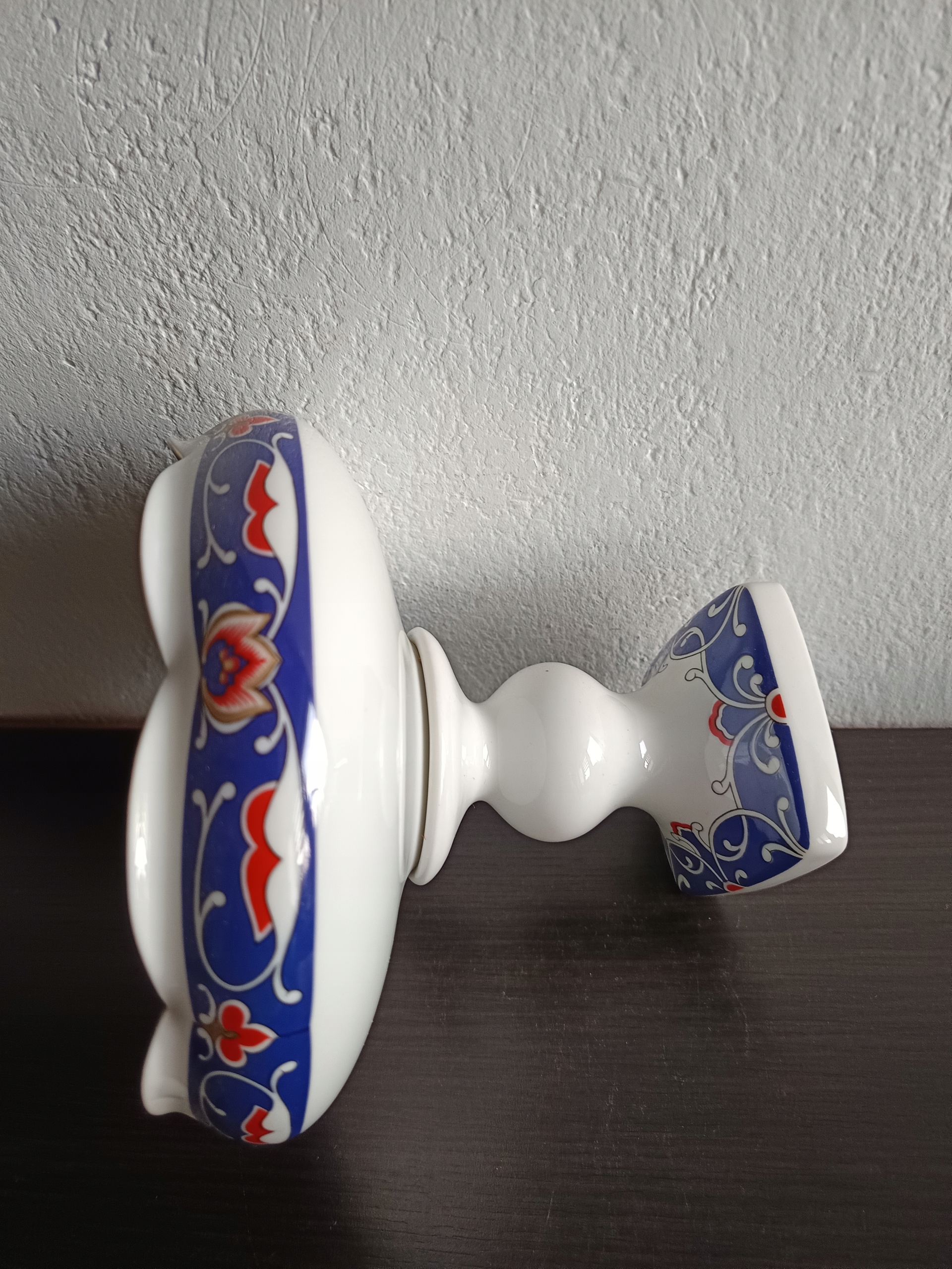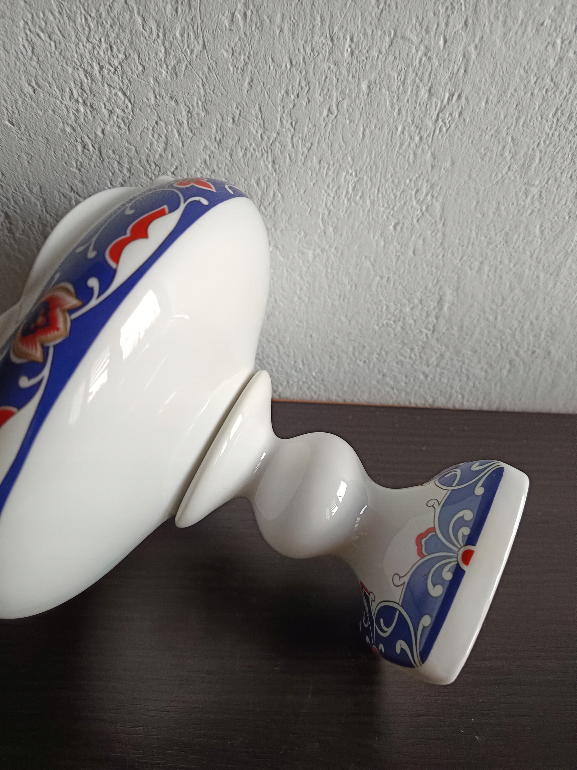 Porcelanowa patera na stopie.