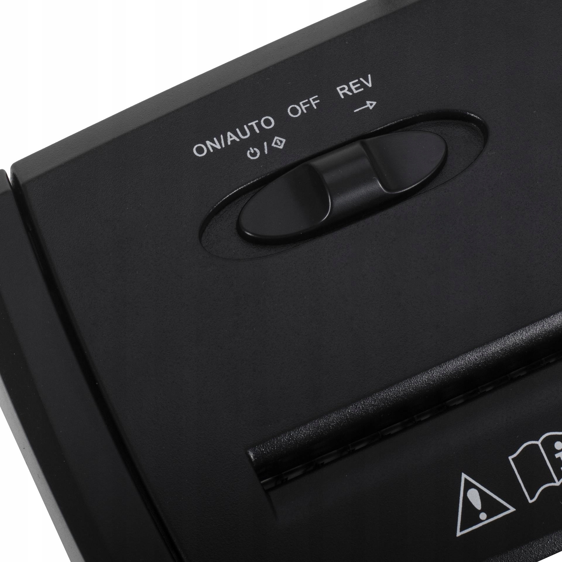 NISZCZARKA NA KOSZ (REGULOWANA 26–34 cm) | DO 5 KARTEK JEDNOCZEŚNIE | KOMPAKTOWA I LEKKA | AUTOMATYCZNY START/STOP | FUNKCJA COFANIA (REVERSE) | CIĘCIE PASKOWE 6,8 mm | SZEROKI PODAJNIK A4 22 cm | ZABEZPIECZENIE PRZED PRZECIĄŻENIEM | CICHĄ PRACA 72 dB | MOC 150 W | OSZCZĘDNOŚĆ MIEJSCA | ELASTYCZNE DOPASOWANIE DO KOSZA | IDEALNA DO DOMU I MAŁEGO BIURA