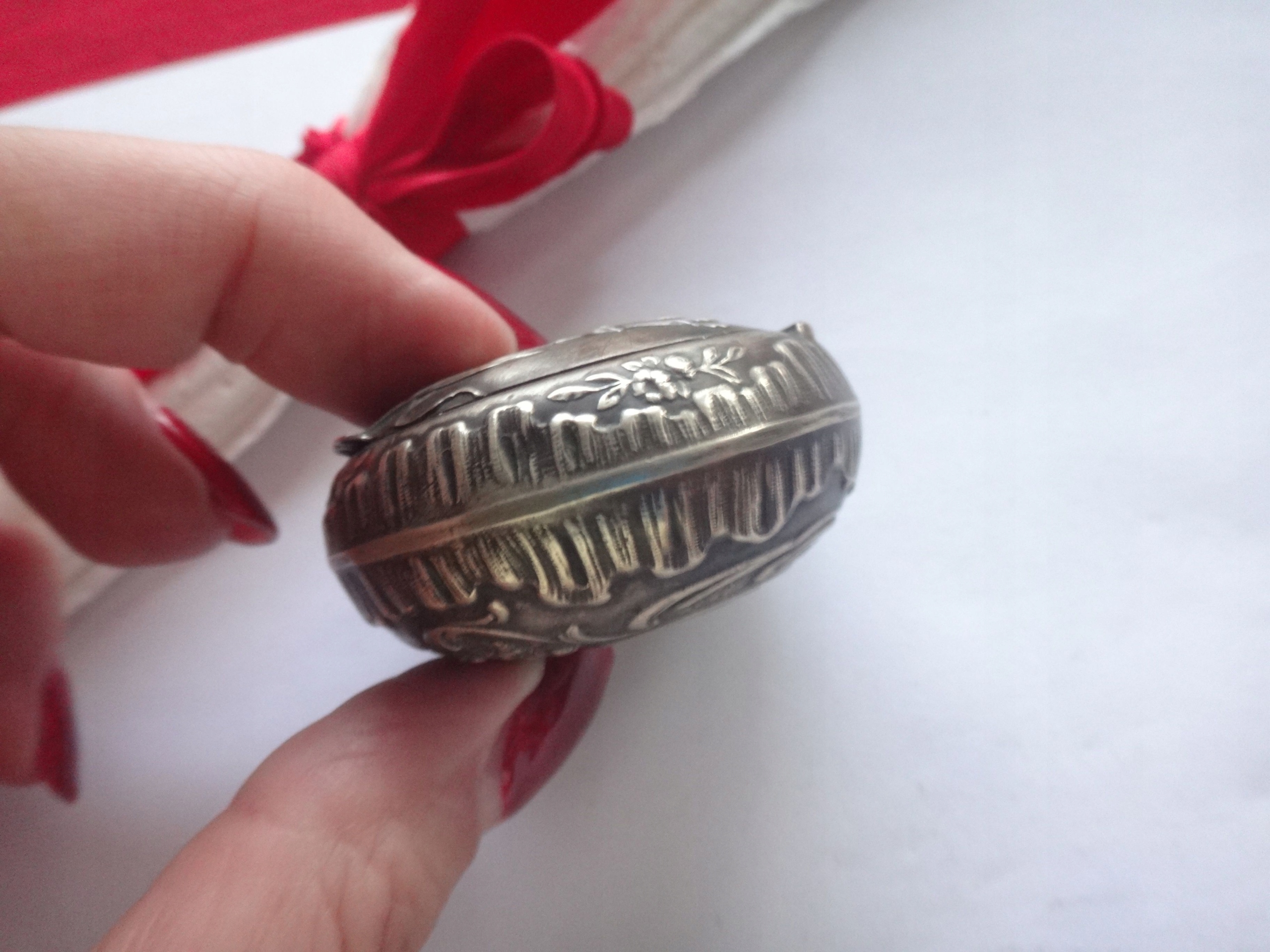 Srebrne puzderko znajduje się w dobrym stanie zachowania z normalnymi śladami użytkowania