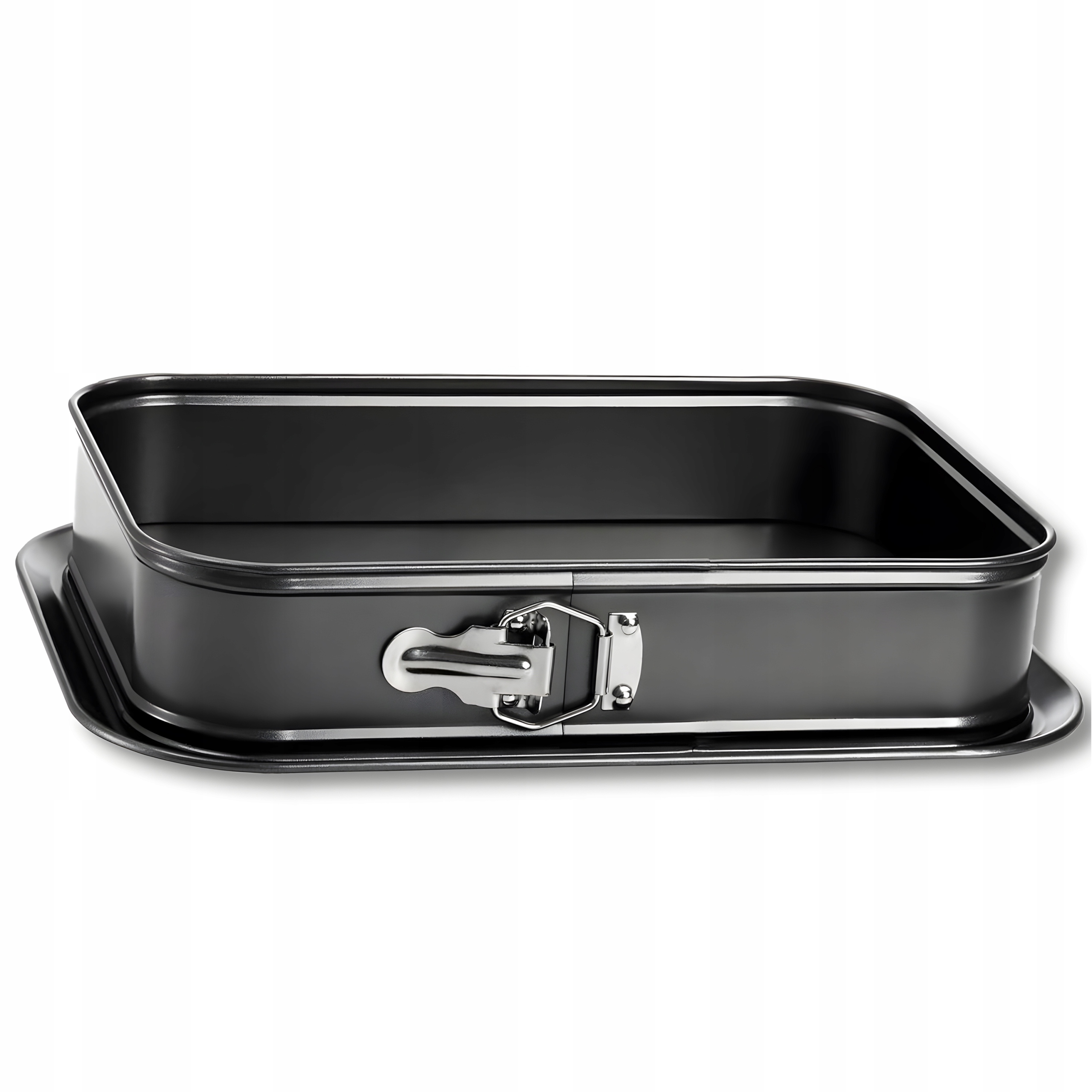 Prostokątna forma do ciasta została wykonana ze stali węglowej z powłoką nieprzywierającą. Ta solidna konstrukcja zapewnia długotrwałą wytrzymałość i odporność na zarysowania. Powłoka nieprzywierająca gwarantuje, że ciasto nie przywiera do formy, co znacznie ułatwia jego wyjmowanie oraz czyszczenie. Dzięki temu pieczenie staje się prostsze i bardziej efektywne.
