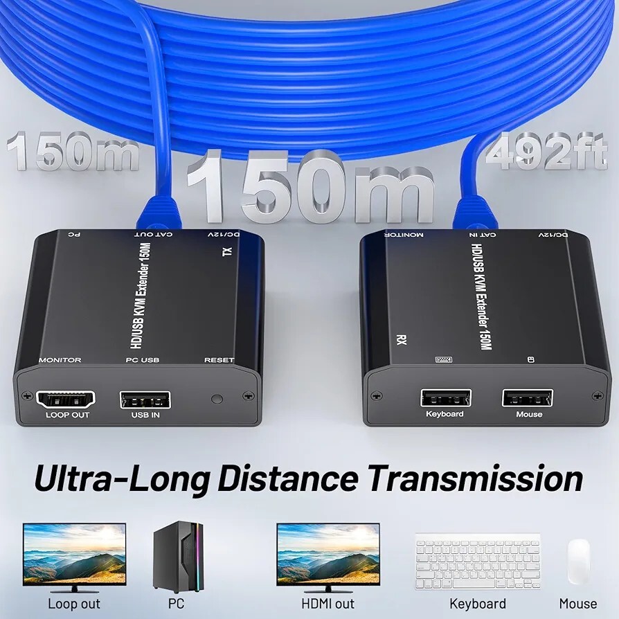 Przedłużacz HDMI 150 m KVM
