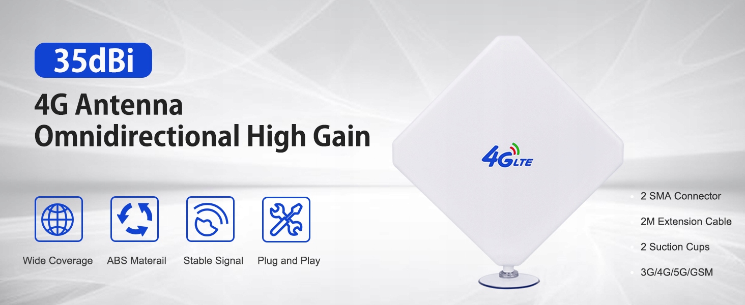 Antena Wi-Fi 35 dBi - antena SMA 4G zwiększa prędkość i siłę sygnału LTE do szerokiego zakresu zastosowań. Idealnie nadaje się do wymiany uszkodzonych/utraconych standardowych anten. Zapewnia dodatkowe wzmocnienie dla urządzeń 3G/4G/5G/GSM/GPRS.