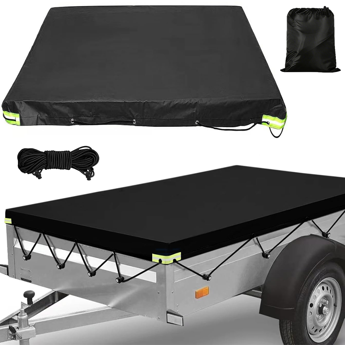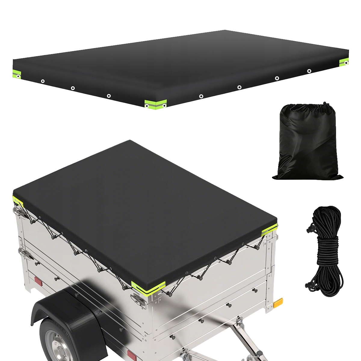 💦💦💦Plandeka na przyczepę 258 x 136 x 10 cm Wodoodporna osłona przyczepy na przyczepy 750 kg Tkanina Oxford Nylonowa plandeka Ochrona UV Śnieg Deszcz Odporny na kurz (czarny)