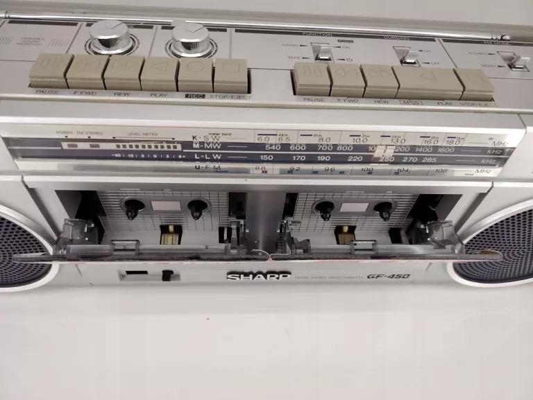 RADIO SHARP GF-450 MAGNETOFON VINTAGE STAN BDB CASSETTE FM STEREO LATA 80