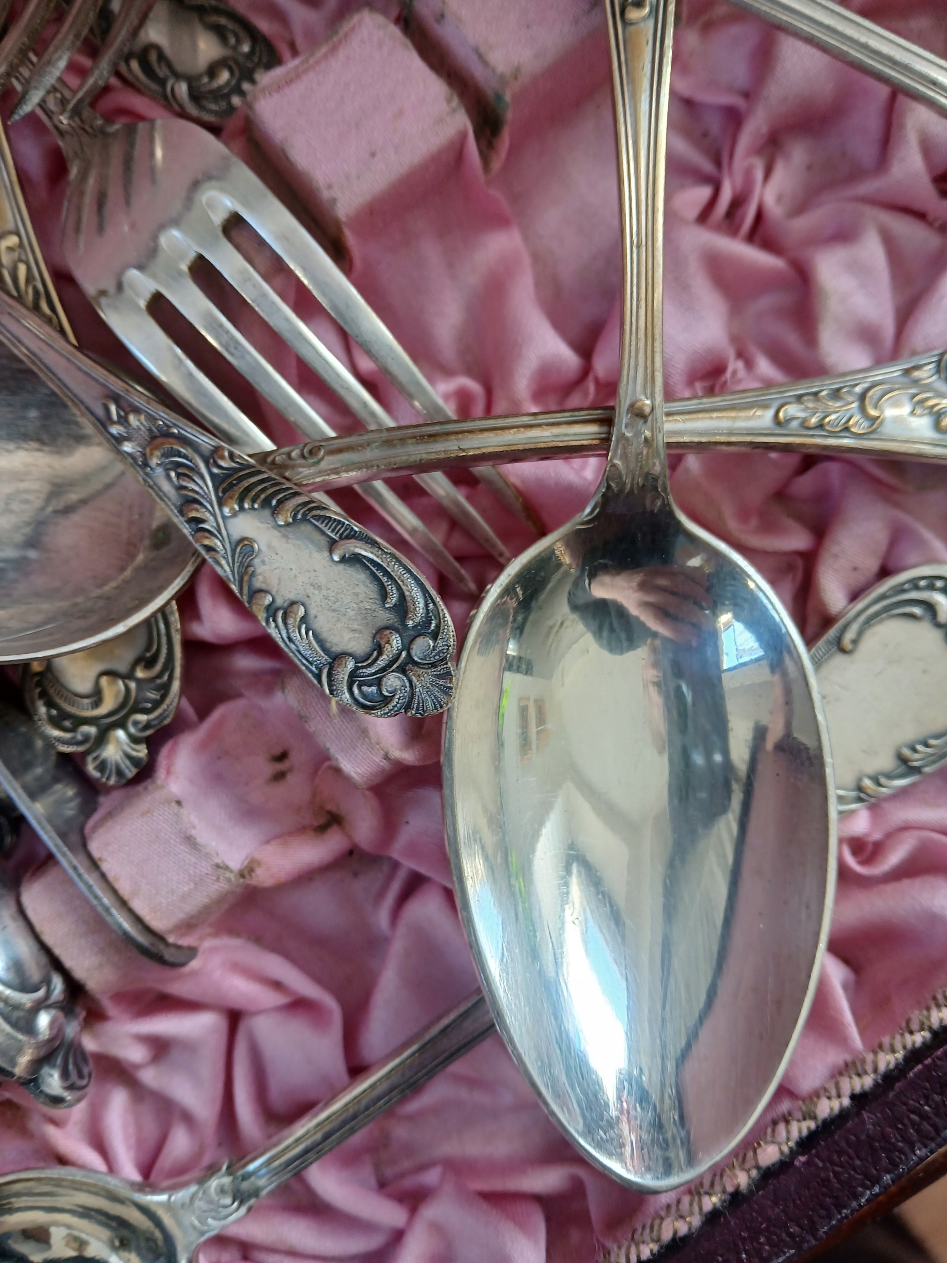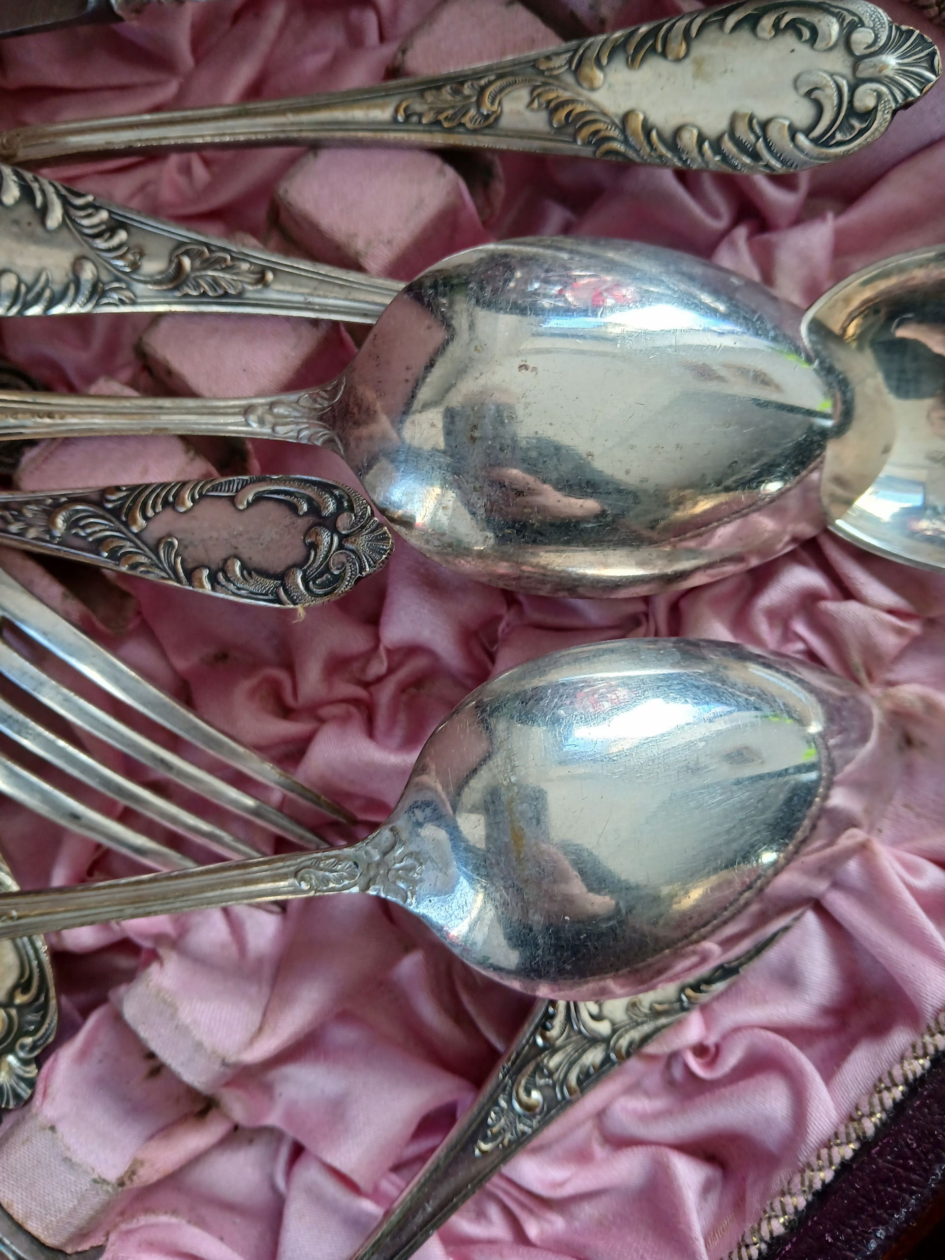 Piękne przedwojenne sztućce Bardzo ładny stan ale nie idealny w niektórych miejscach plater jest już przytarty