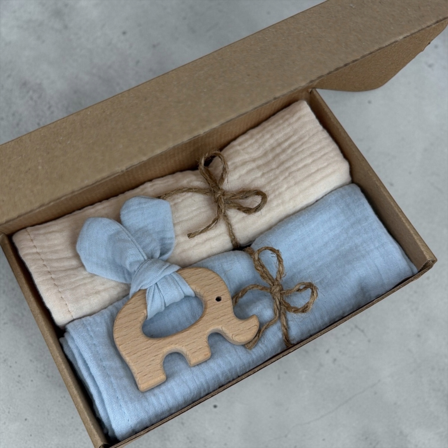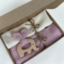 Zestaw zawiera dwie pieluszki muślinowe o wymiarach ok. +/- 38 x 38 cm oraz praktyczny gryzak dla niemowlęcia. Całość wykonana z myślą o komforcie i bezpieczeństwie najmłodszych – idealna zarówno na co dzień, jak i na prezent.