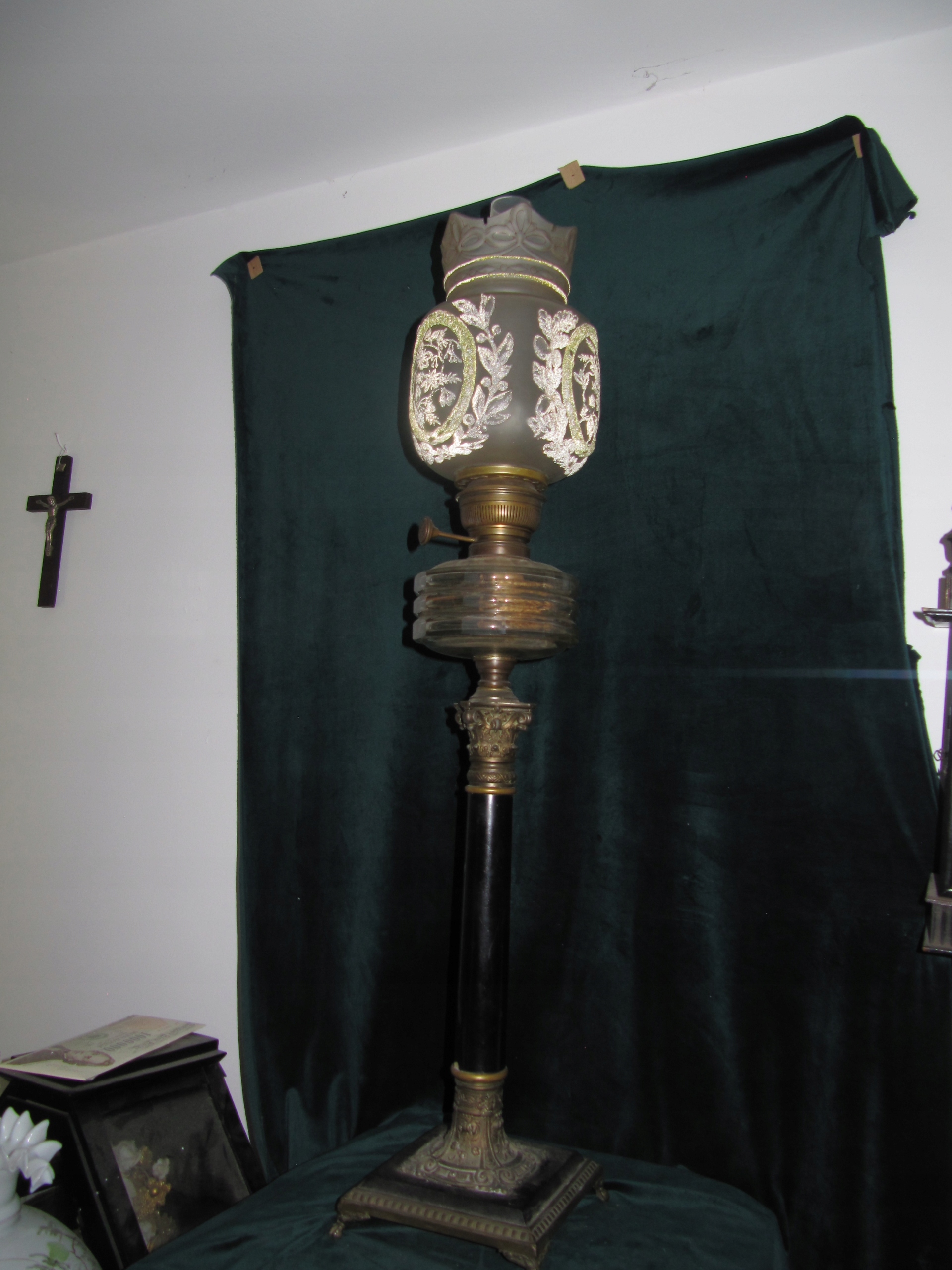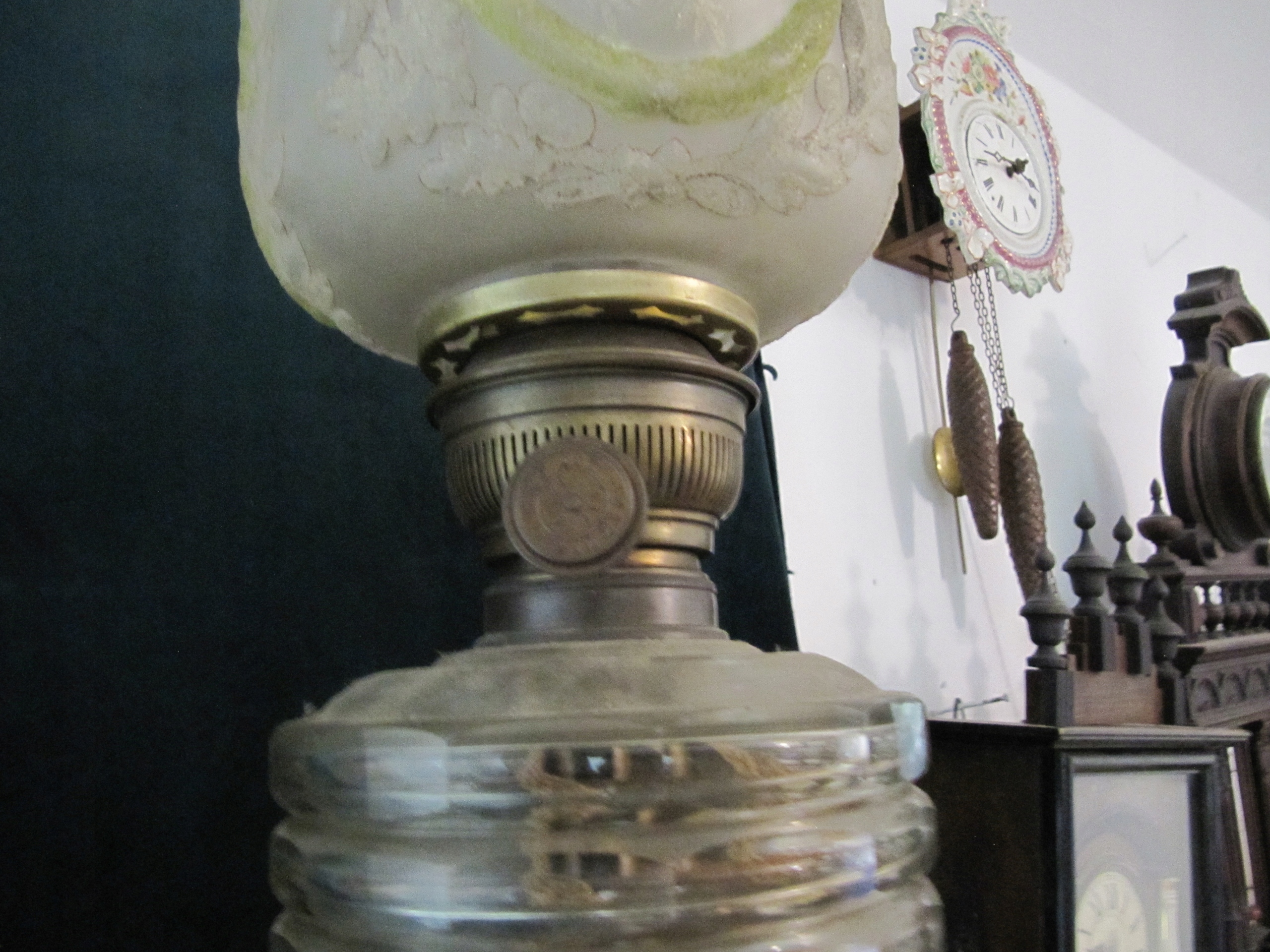 REZERWACJA--DOBRA--CENA---WRAZIE PYTAŃ--MOGĘ ZROBIĆ --PROMOCYJN,A--- CENĘ -NA--KUP-TERAZ ---OKAZJA---Sprzedaję Muzealną z prywatnej kolekcji przepiękną i bardzo dużą Kolumnowa lampę naftową w 100% oryginalna z końca XIXw. wykonana z brazu i czarnego marmuru -wysokość całkowita lampy to 98 cm klosz tulipan przepieknie kwasowo trawiony orginalny recznie malowany i zdobiony brekotem z okresu zbiornik krysztal szlifowany -podstawa 20 cm zachowana w oryginalnym i bardzo dobrym stanie sprawna -Lampa jest nie czyszczona posiada oryginalną patynę----Cały urok i stan tego przedmiotu najlepiej ukazują zdjęcia--MOGE WYSLAC ZA POBRANIEM W razie pytań ? ---694--35--42--59--- Pytanie do sprzedajacego---niżej--