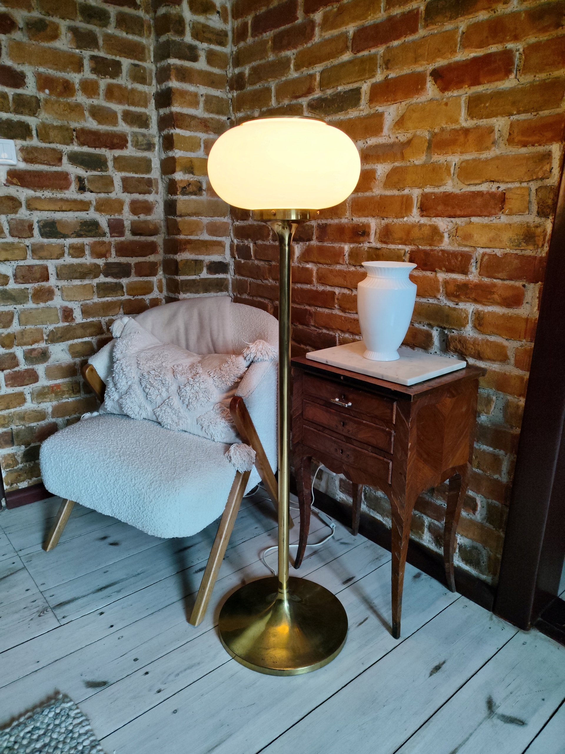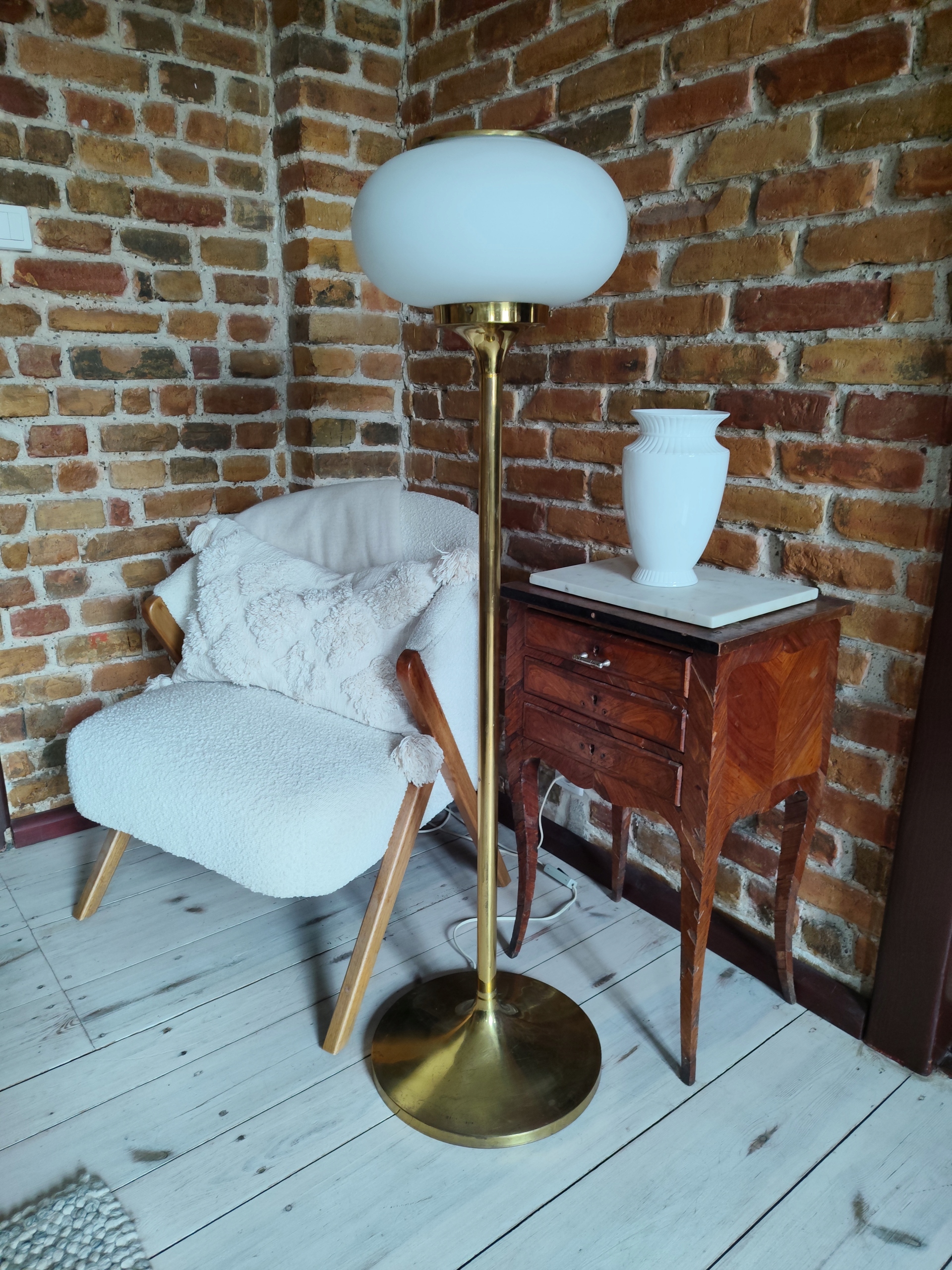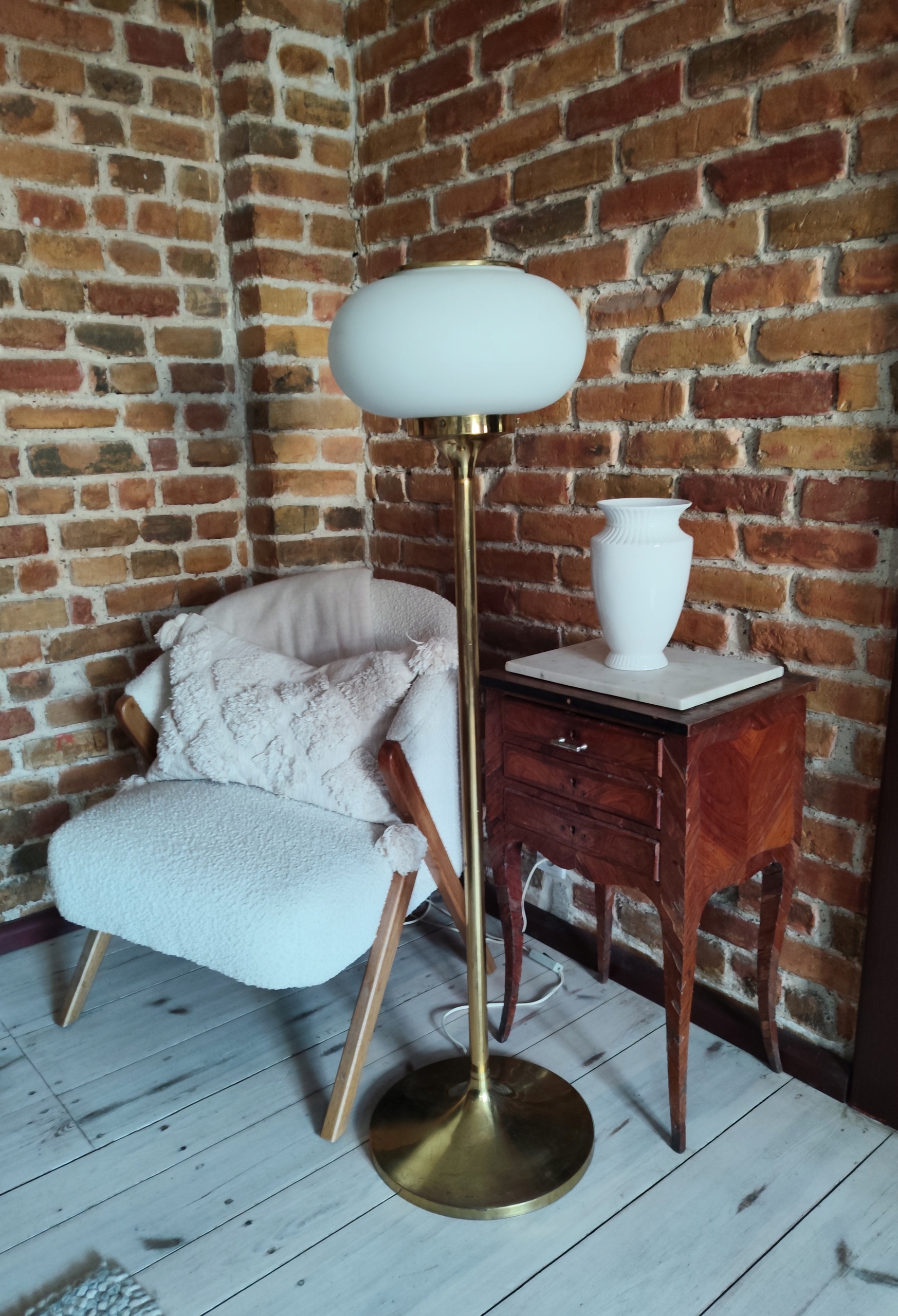 Elegancka lampa stojąca wykonana z wysokiej jakości mosiądzu w klasycznym designie mid-century (połowa XX wieku).