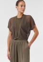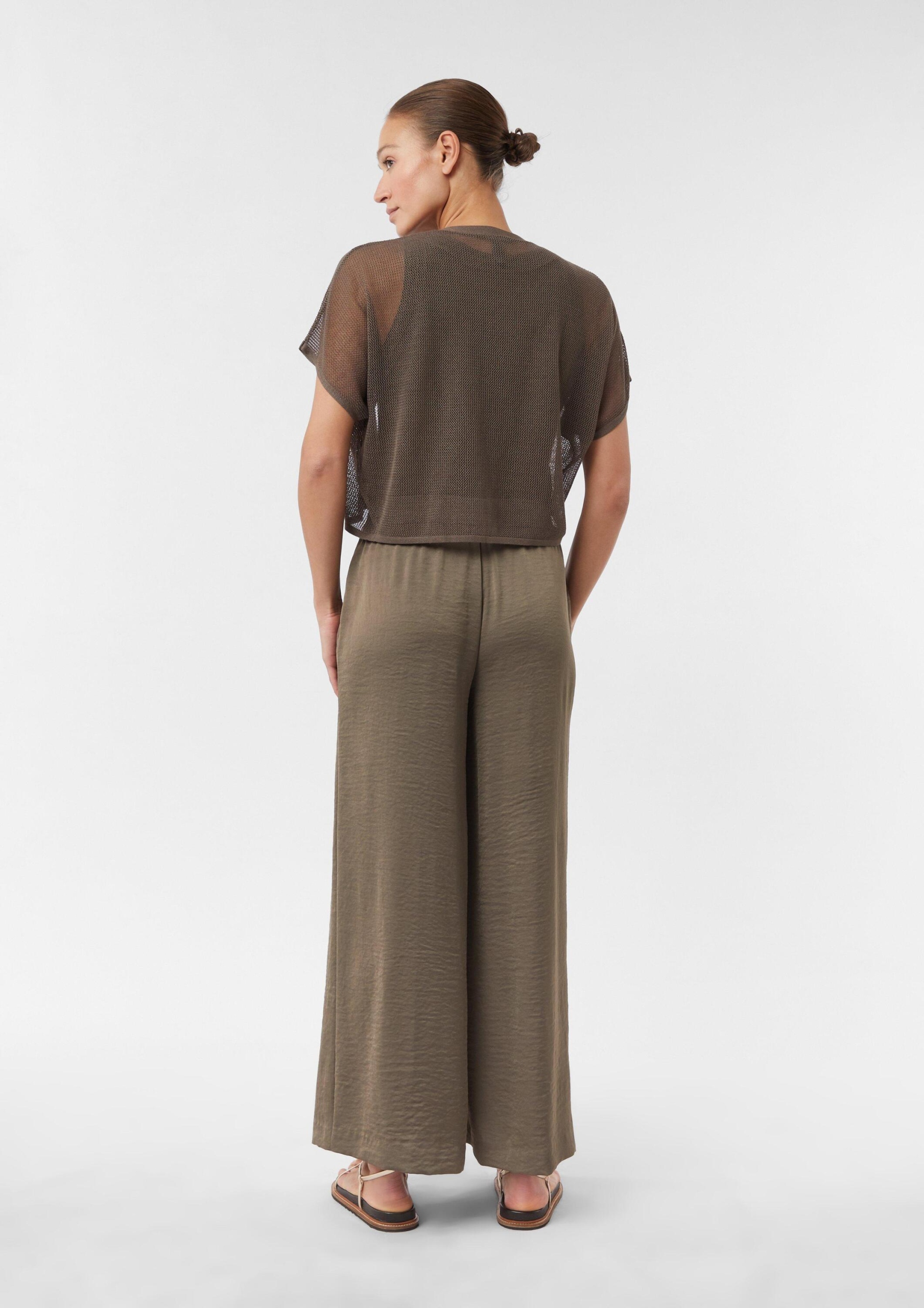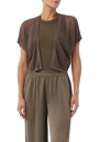Będziesz zachwycony tym lekkim krytym poncho-pesznicem ze zwiewnej dzianiny. Jej połyskujący efekt dodaje blasku Twojemu wyglądowi, a dzianina o drobnej dzianinie zapewnia wygodę i przewiewność. Idealna do nakładania warstw w chłodniejsze wieczory lub jako szykowna narzutka. Wszechstronny i bez wysiłku stylowy, to Twój nieodłączny element zarówno na co dzień, jak i na bardziej strojne okazje.