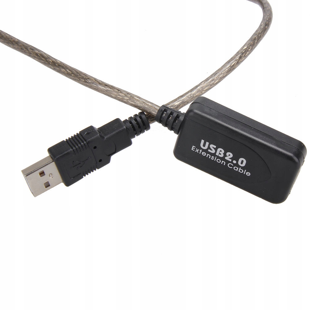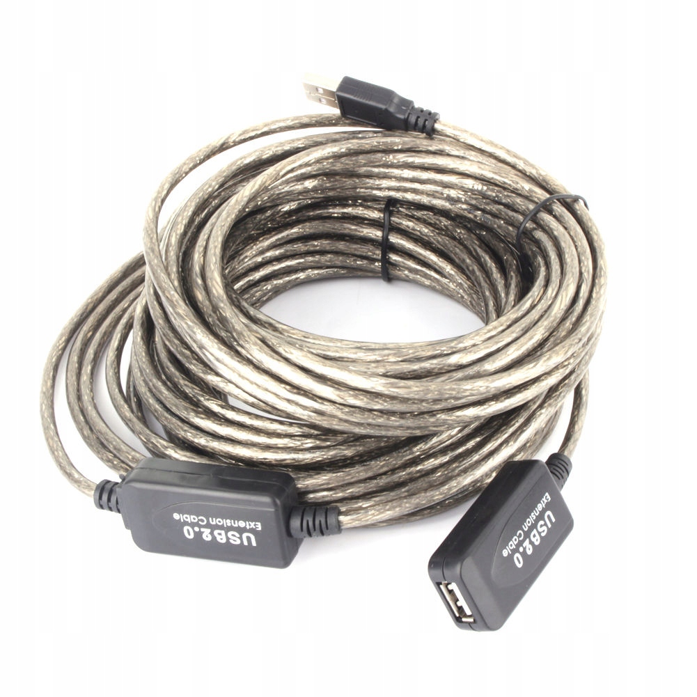 Przedłużacz USB 2.0 o długości 20 m, wykonany z najlepszych materiałów, całość kabla jest ekranowana.