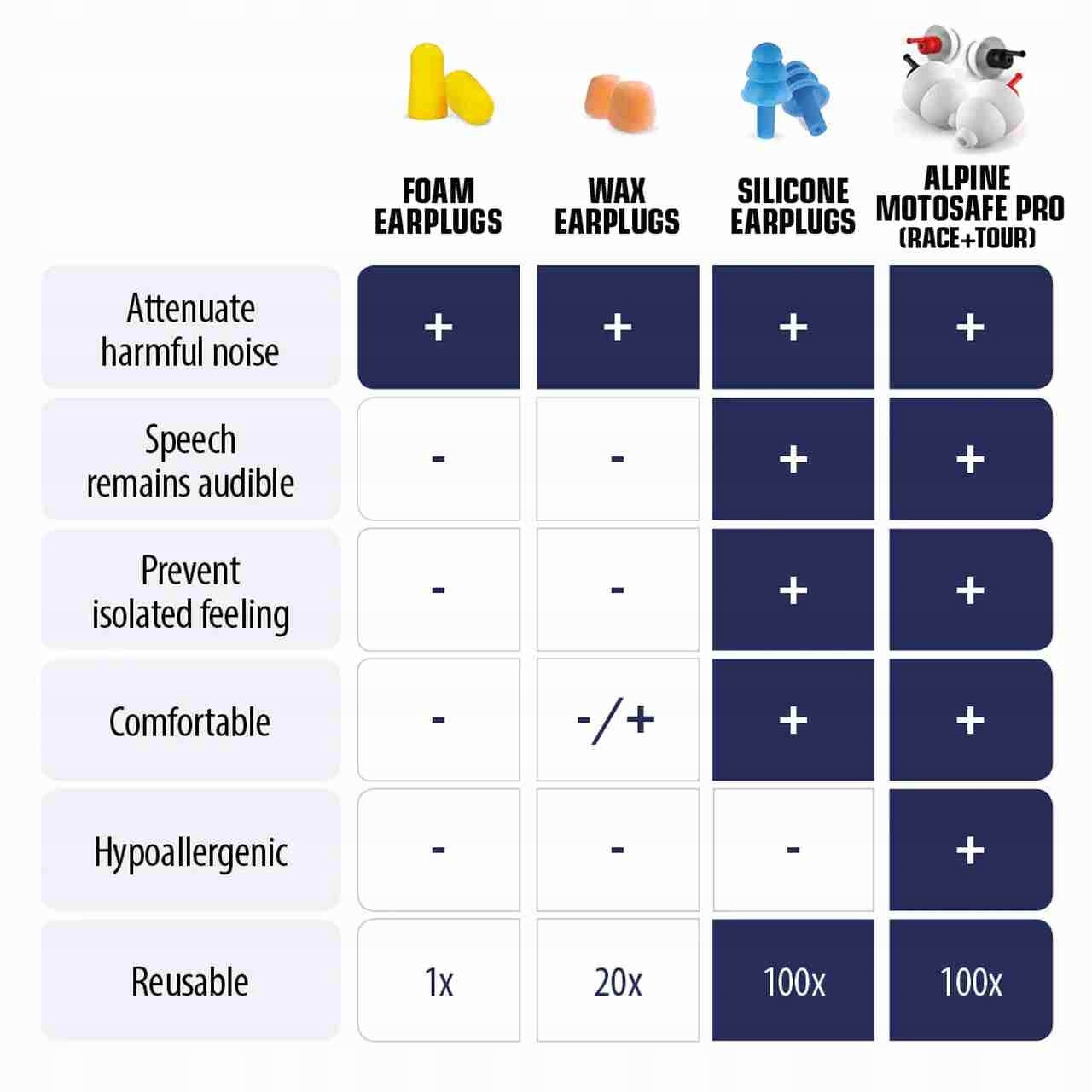 Jedź komfortowo i bezpiecznie na każdym motocyklu! Dzięki profesjonalnym zatyczkom Alpine MotoSafe Pro zapomnisz o bólu głowy, szumie w uszach i zmęczeniu spowodowanym hałasem wiatru – nawet po wielu godzinach jazdy.