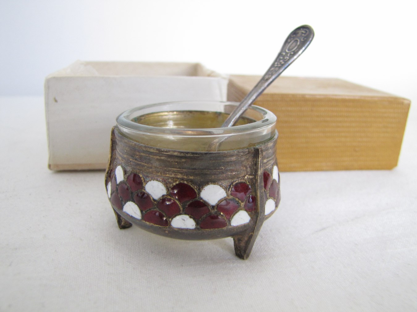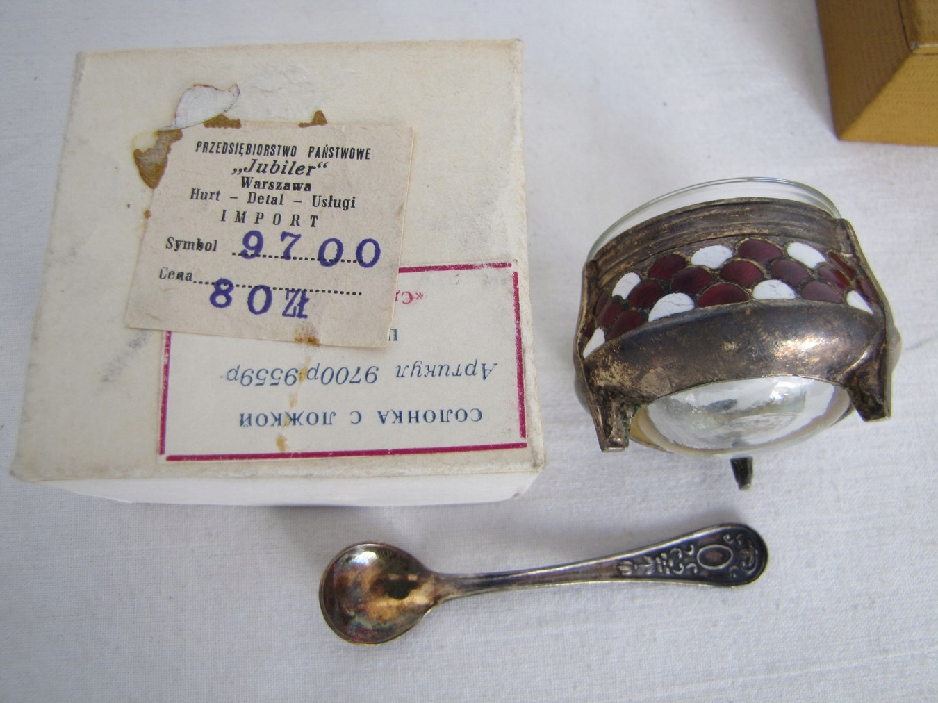 Solniczka nieużywana, w oryginalnym opakowaniu. Wyrób z czasów PRL, bez uszkodzeń lub śladów użytkowania. Średn zewn 5,5 cm. , wys 3,5 cm. , dł łyżeczki 7,5 cm. Zapraszam na inną moją aukcję podobnej solniczki , przy zakupie na obu aukcjach 1 koszt wysyłki.