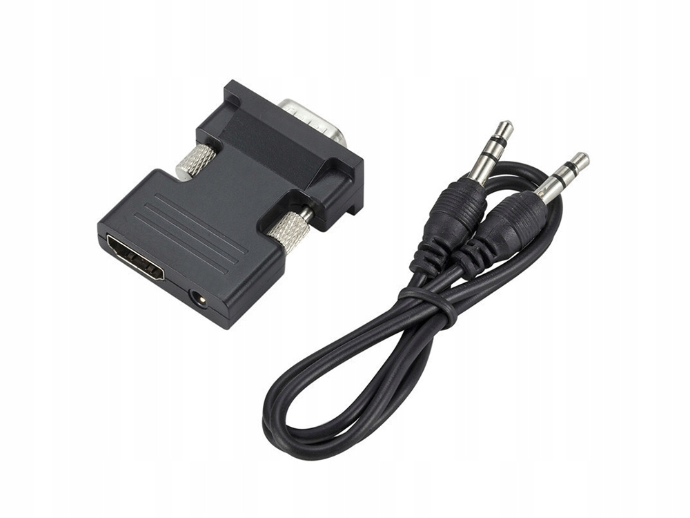 Konwerter wideo / audio z HDMI na VGA (D-Sub). Adapter konwertuje cyfrowy sygnał wideo ze złącza HDMI na analogowy sygnał D-Sub w wysokiej rozdzielczości do 480i .