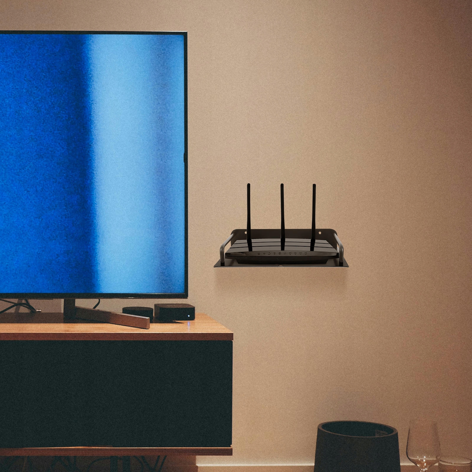 Czarny aluminiowy uchwyt do routera do montażu na ścianie o mocnej i stabilnej konstrukcji