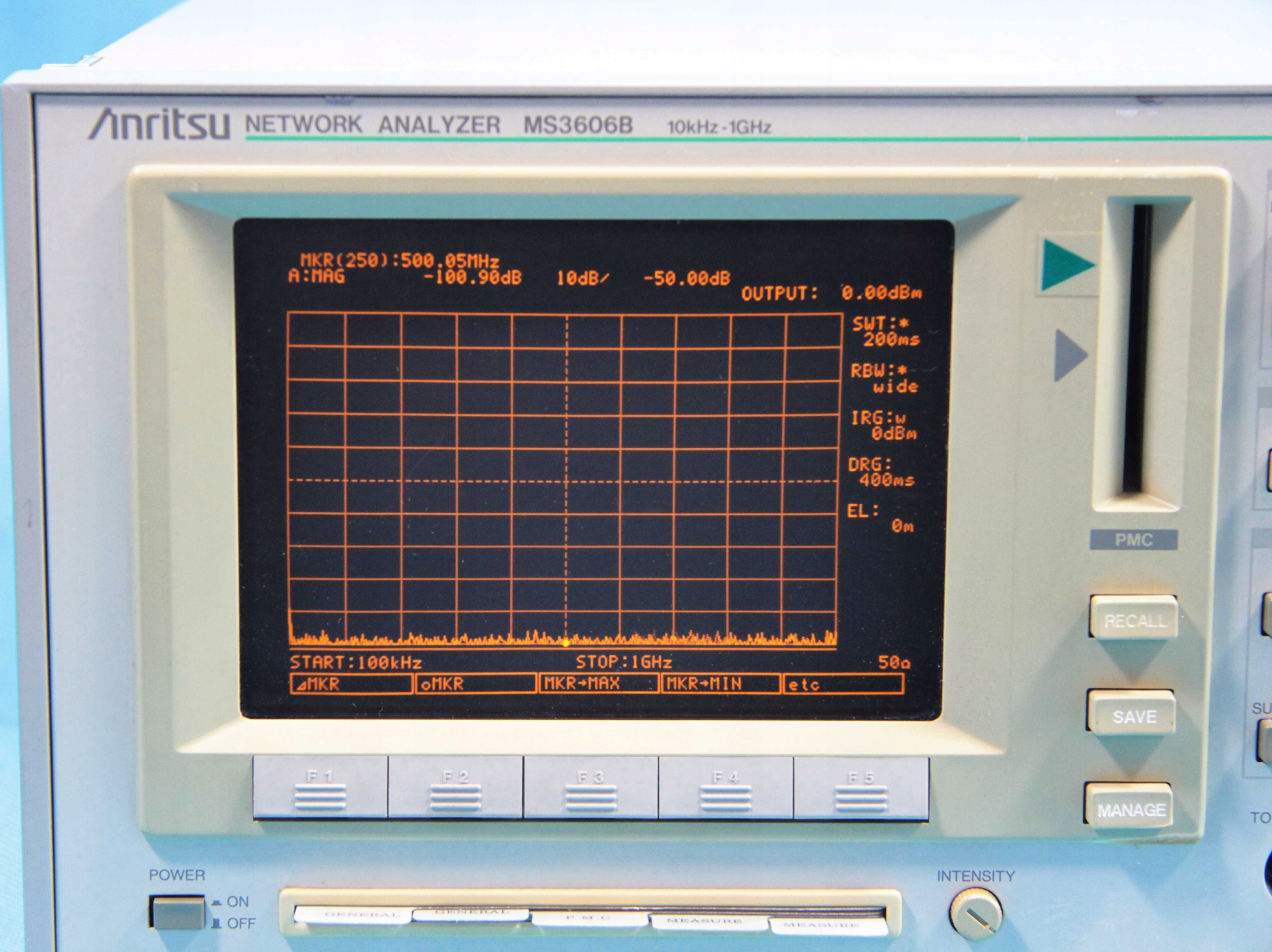 Analizator wektorowy Anritsu MS3606B jest dwuportowym przyrządem pomiarowym przeznaczonym do analizy charakterystyk elementów i układów RF w zakresie częstotliwości od 10kHz do 1GHz. Urządzenie umożliwia pomiar parametrów S, w tym współczynnika odbicia oraz charakterystyki transmisji, z prezentacją zarówno amplitudy, jak i fazy.