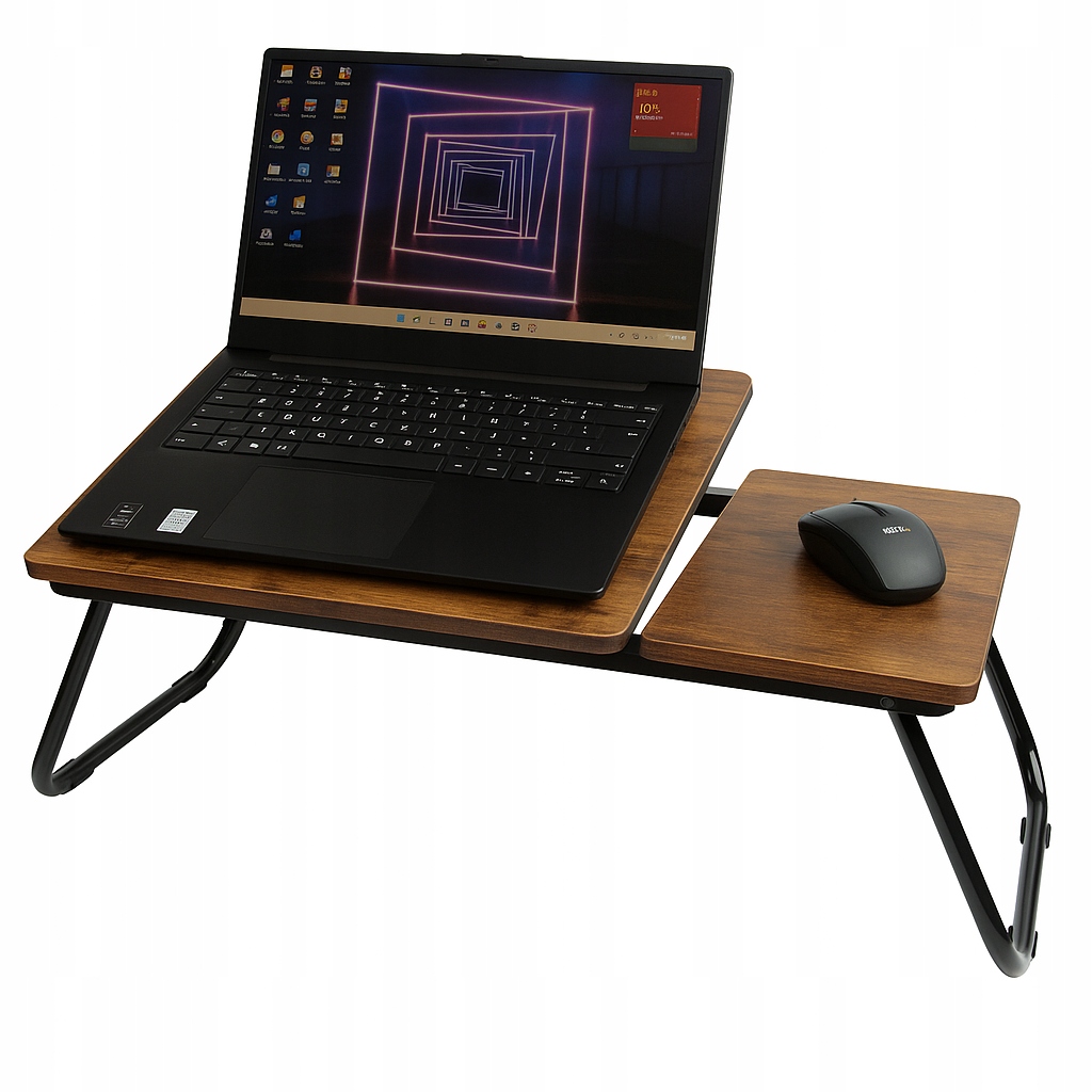 Stolik posiada blat o łącznej szerokości 67 cm i głębokości 32 cm. Główna, większa powierzchnia robocza ma 37 cm szerokości i 29 cm głębokości, dzięki czemu zapewnia wygodne miejsce na laptop, książkę lub tablet.