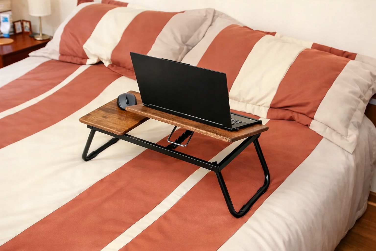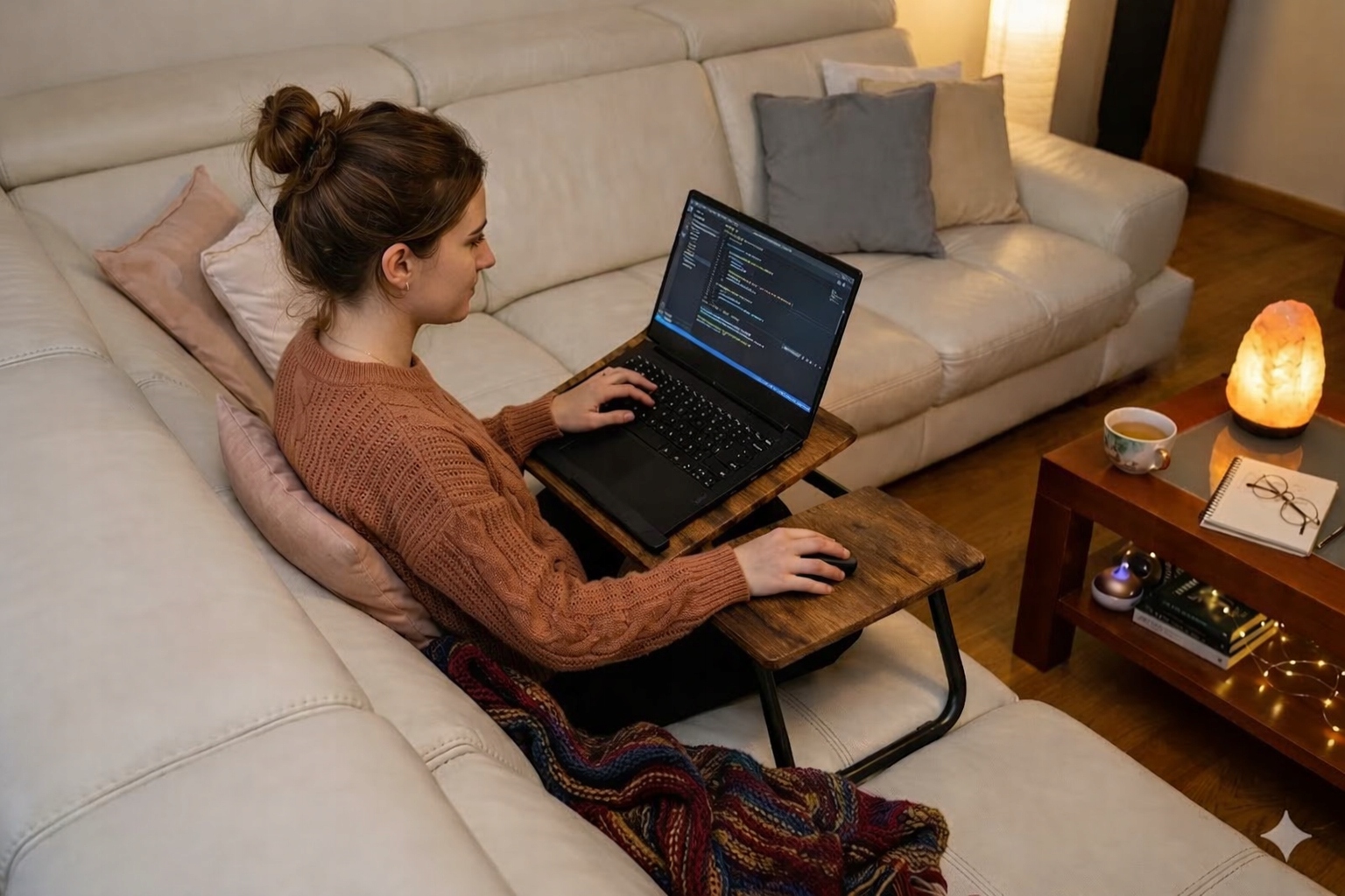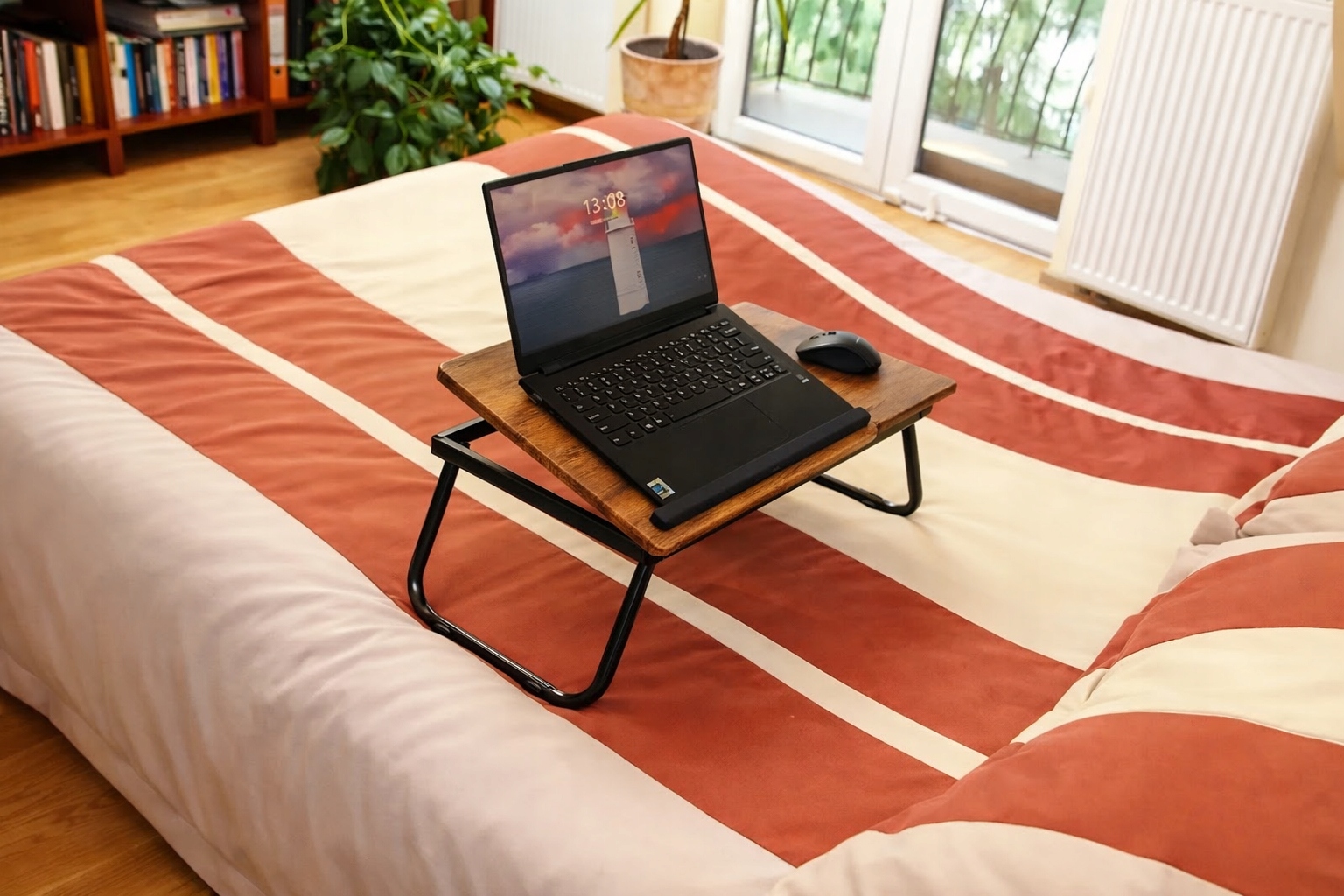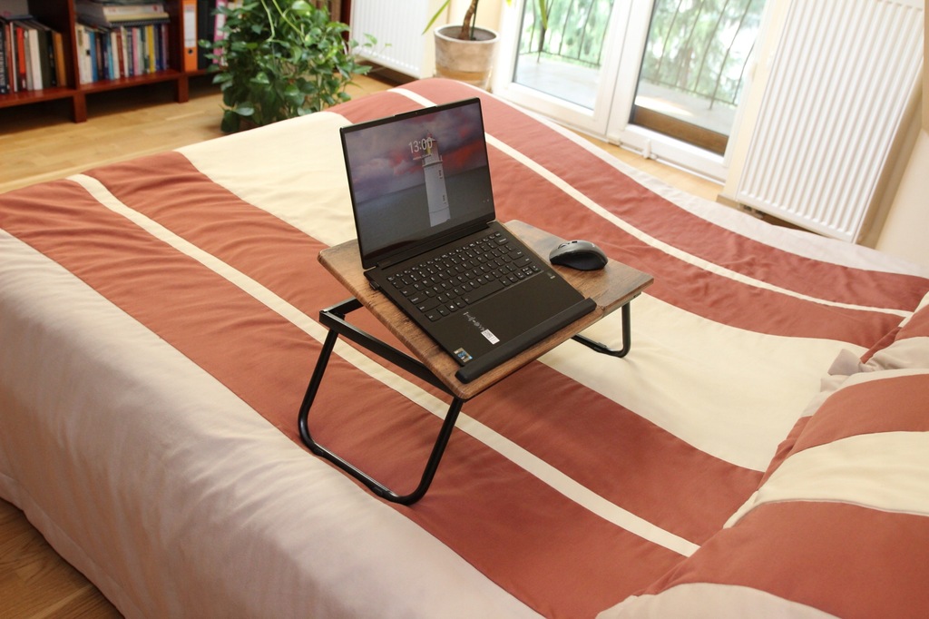 Regulowany blat zwiększa komfort i ergonomię użytkowania, ponieważ umożliwia lepsze dopasowanie kąta do wzroku oraz pozycji ciała. To praktyczne rozwiązanie, które sprawia, że podstawka staje się bardziej uniwersalna i wygodna w codziennym użytkowaniu — zarówno w domu, jak i podczas pracy czy nauki