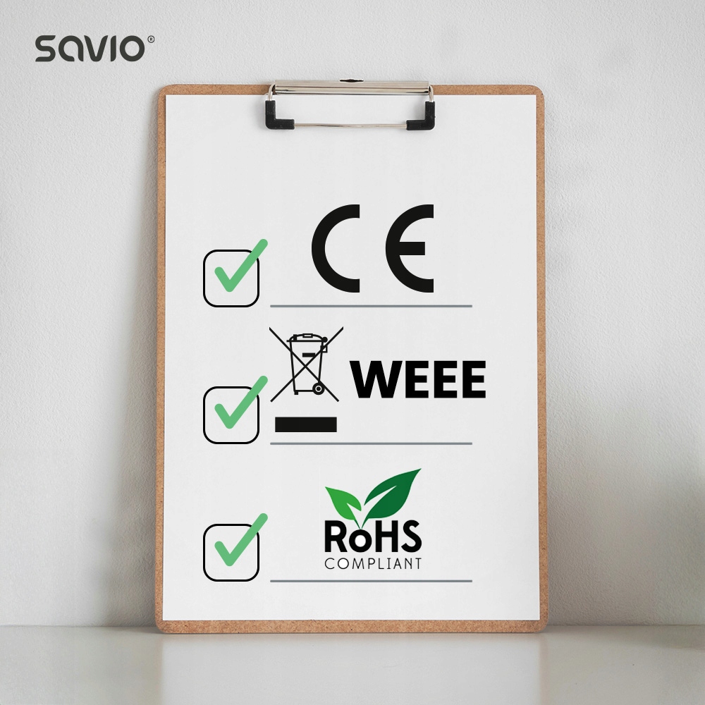 Z kolei dyrektywa WEEE gwarantuje, że produkt został zaprojektowany z myślą o odpowiedzialnym gospodarowaniu odpadami elektrycznymi i elektronicznymi, wspierając recykling oraz minimalizowanie wpływu na środowisko naturalne.