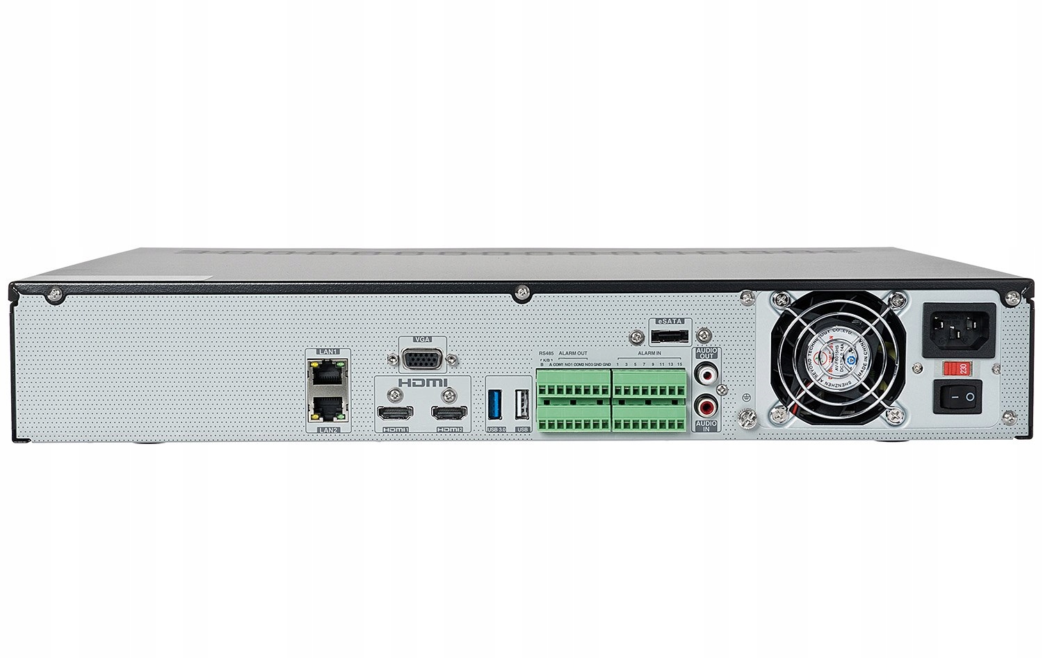 PX-NVR3282H posiada na wyposażeniu port HDMI (4K), port VGA (1080p) oraz 2 porty USB 2.0 i 1 USB 3.0. Dodatkowo zastosowane złącza audio pozwalają na włączenie rejestratora do systemu PA, a złącza alarmowe do systemu alarmowego SSWiN. Podwójny interfejs RS485 umożliwia łatwe sterowanie kamerą PTZ i klawiaturą sterującą, a złącze LAN 1000Mbps zapewnia stabilne połączenie sieciowe. Urządzenie umożliwia rejestrowane nagrań z monitoringu na dwóch dyskach HDD o maksymalnej pojemności 12TB każdy.
