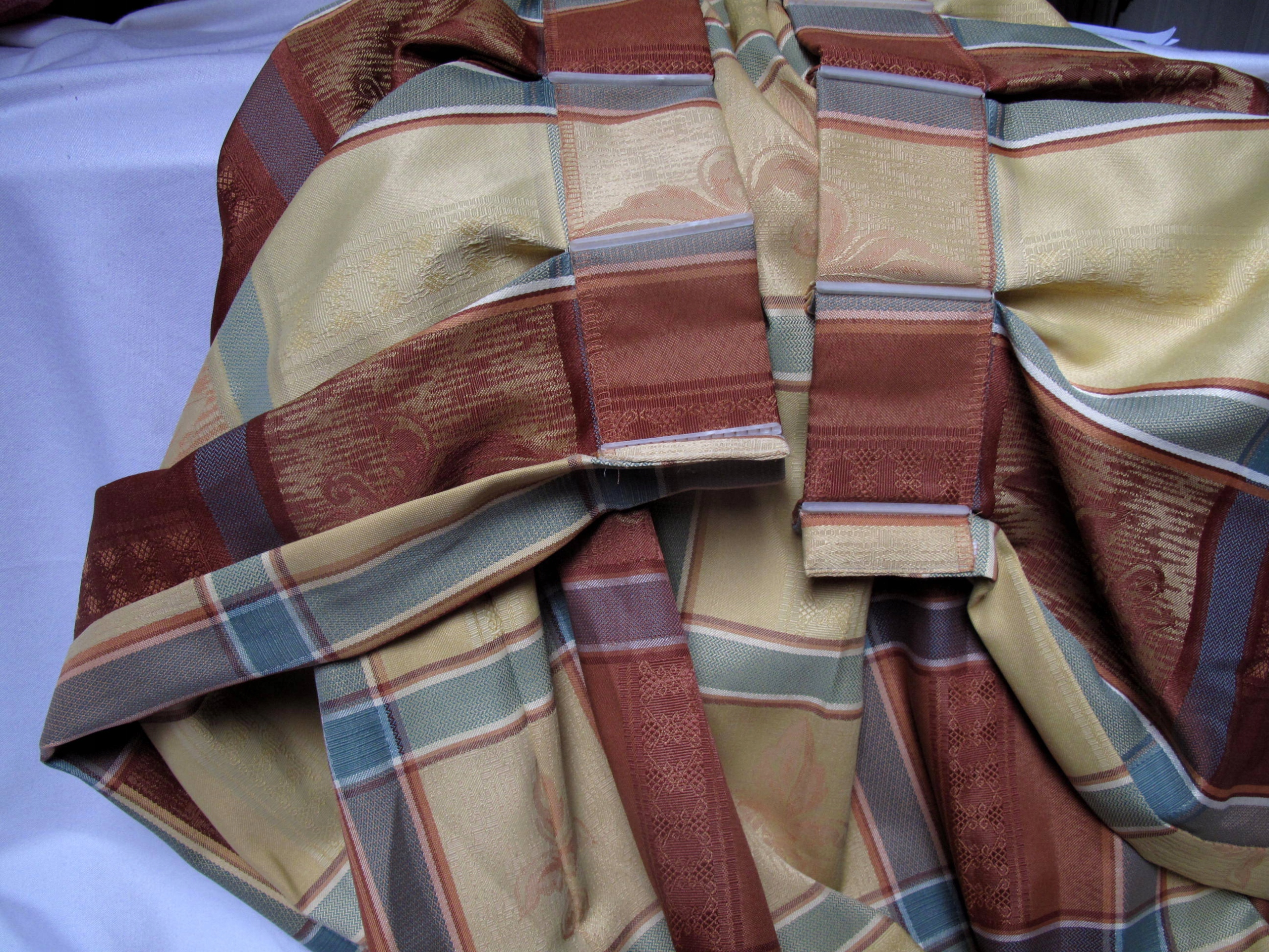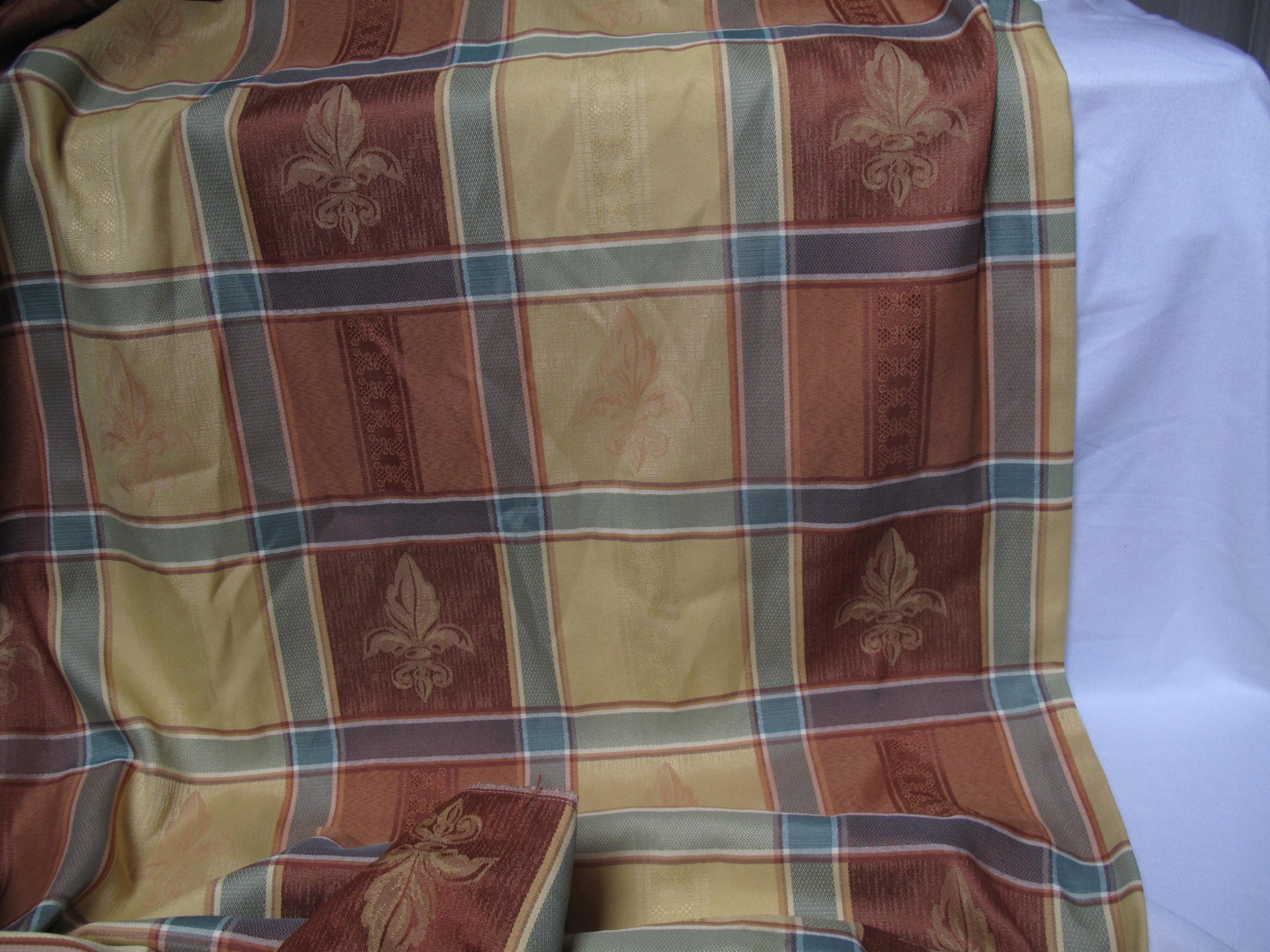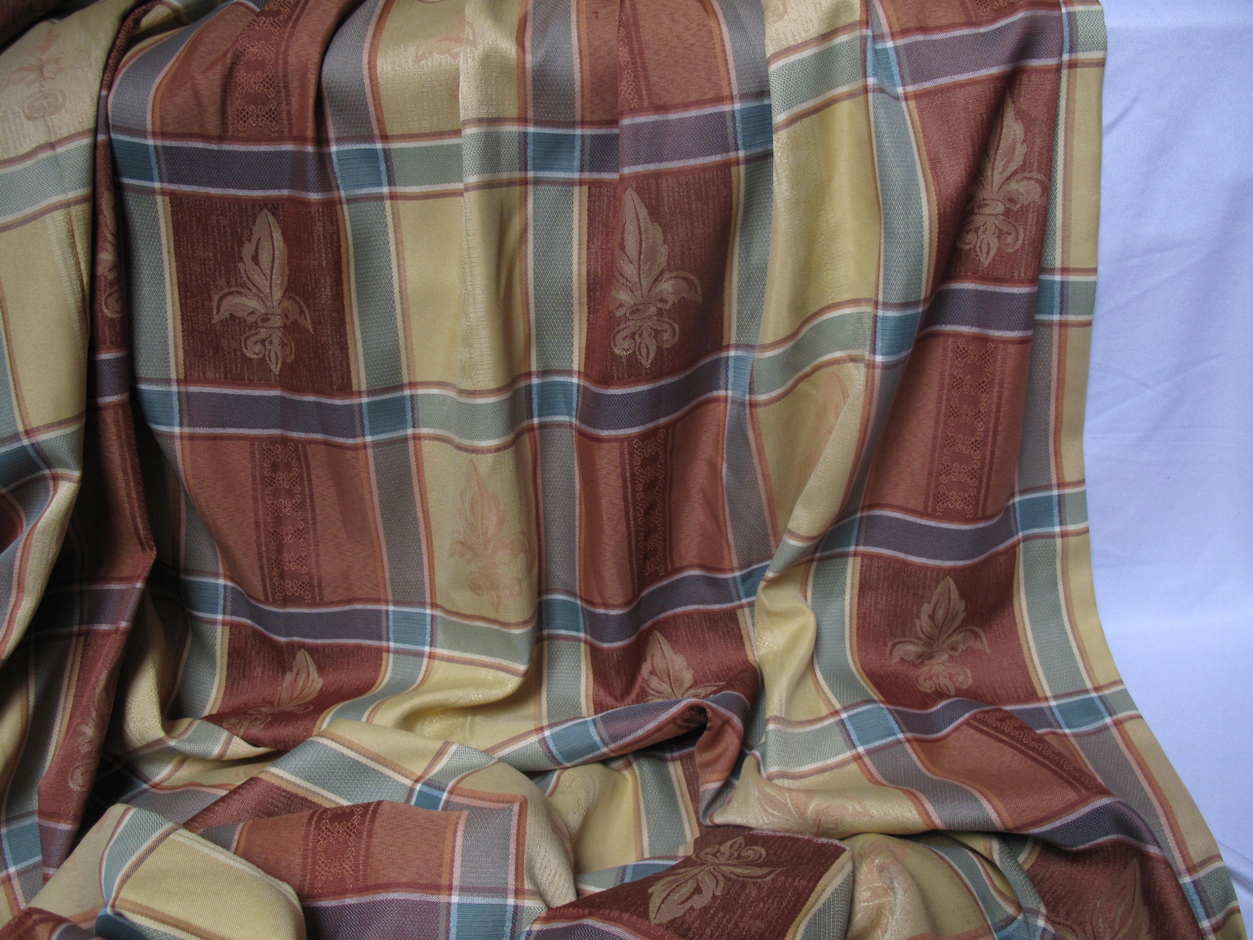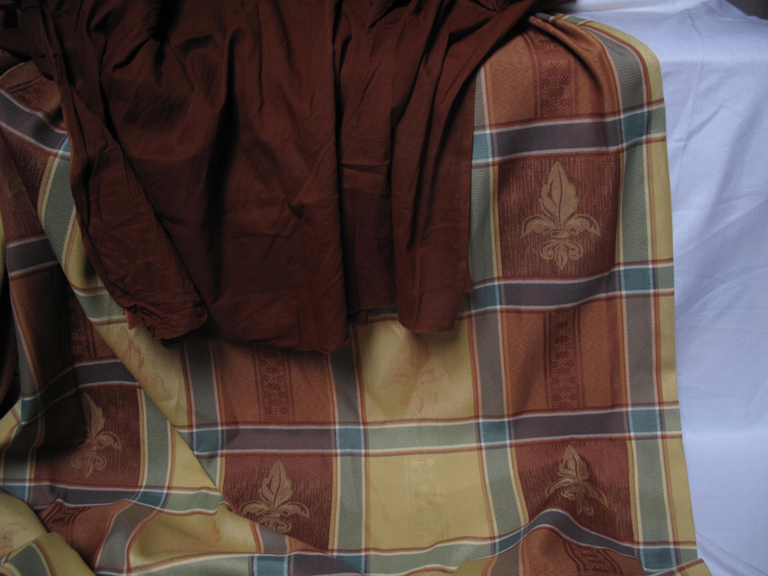 Tkaniny na moich aukcjach na ogół nie posiadają metek ani sygnatur / jeżeli mają zawsze je przedstawiam/, kieruję się wyłącznie własnym oglądem, mogę się mylić w ocenie materiału / prawdziwy czy sztuczny/ . Kolory jak na pierwszym zdjęciu . U góry założone fałdy . Z pałacowej, gobelinowej tkaniny, ciut grubsza, lekko sztywna. Stan bdb. Wielkość 192 cm szerokość x 172 cm wysokość . Oraz do wykorzystania kupon, ma 300 x 140 cm, bawełny indyjskiej, cieniutkiej, brązowej, farbowanie ręczne.